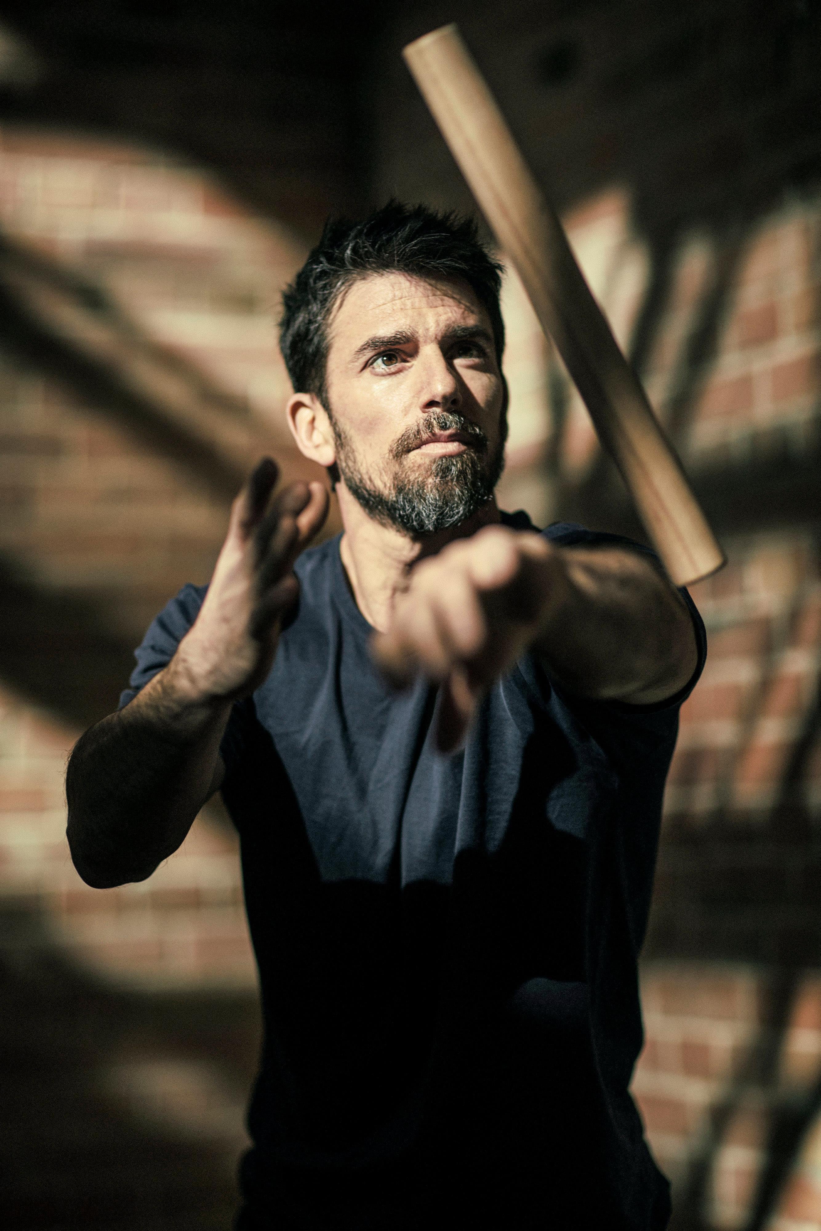 Stöcke greifen sich gut. Perfekt zum Balancieren oder um seinen Partner zu zwingen, Stockhieben auszuweichen. Das Ausweichen trainiere ich mit Mixed-Martial-Arts-Profis – oder mit meiner 67-jährigen Mutter.