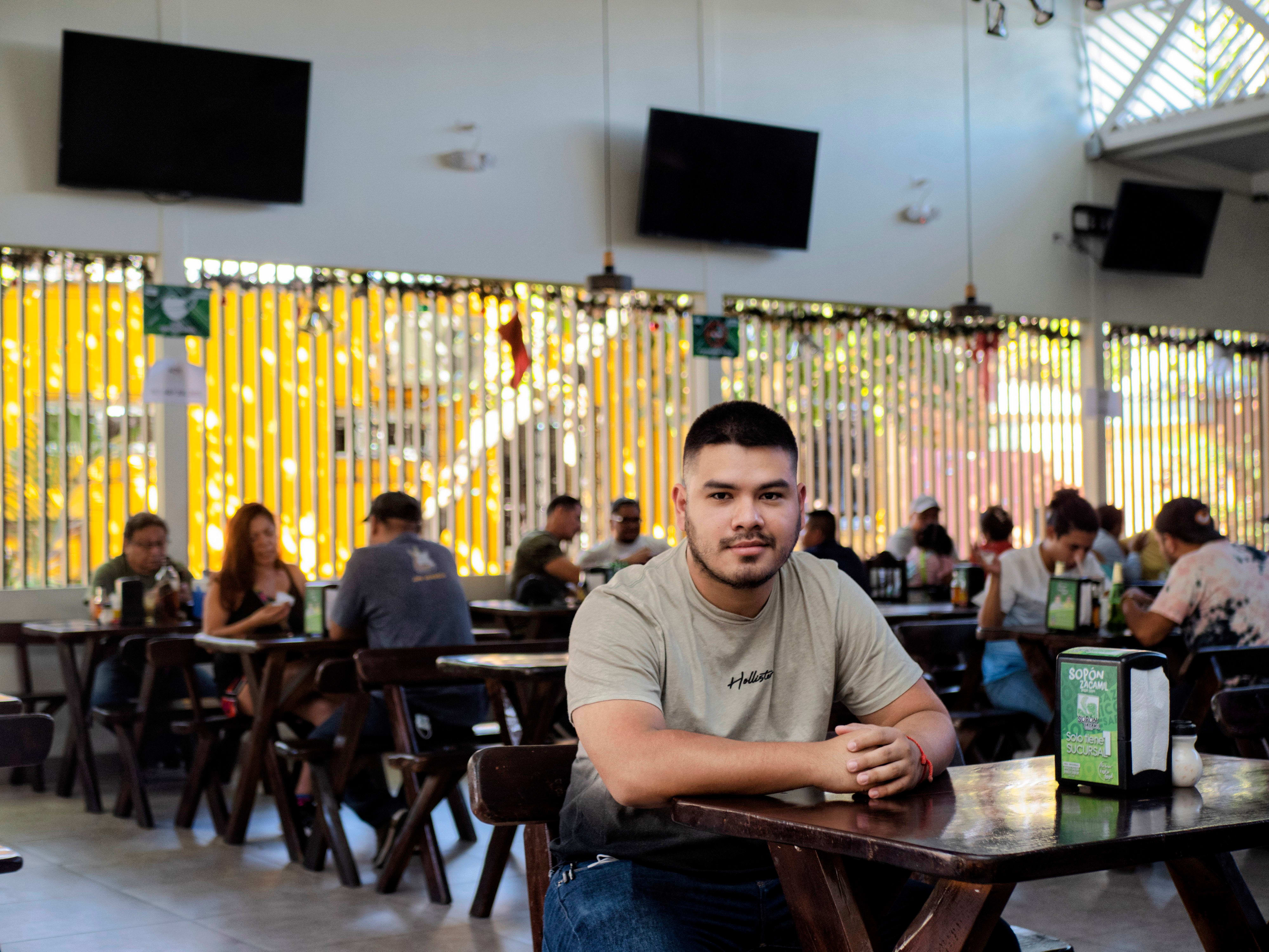 „Mein Vater schreibt Rechnungen am liebsten noch mit der Hand“, sagt er und lacht. Gemeinsam führen sie das Sopón Zacamil, ein großes, helles Restaurant mit dunklen Holztischen an der Grenze zum Bandengebiet im Norden San Salvadors, in das Einheimische aus der Umgebung zum Mittagessen kommen. Der grüne Leguan, der mit verschmitztem Blick eine Limettenspalte haltend die Karte ziert, ist die Spezialität des Hauses und auch Nelsons Lieblingsessen. Eigentlich würden sie das schon längst auch für Bitcoin verkaufen, erklärt er, sie müssen jedoch noch auf das dafür notwendige Bezahlterminal warten. Das kommt aus China, die Lieferung verzögere sich immer wieder.