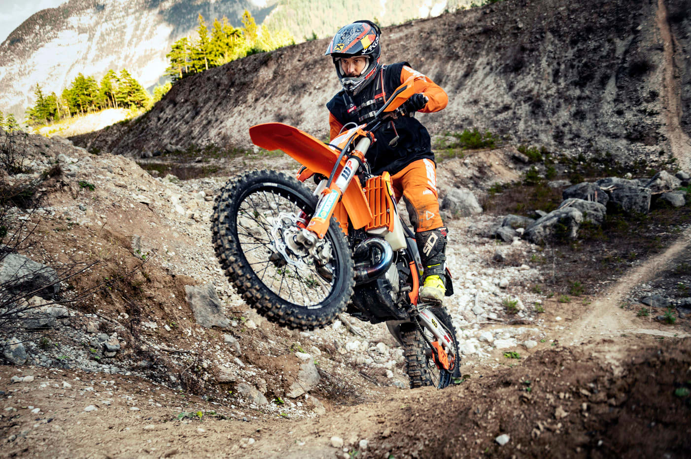 Genau das! Zum Beispiel: Ich kann natürlich Ski fahren, ja. Aber wenn ich Freeriden gehe, bin ich in gewisser Weise trotzdem wieder Anfänger. Weil es dabei so vieles gibt, was ich noch nicht kann und noch nicht weiß. Und jedes Mal lerne ich was dazu. Von der richtigen Vorbereitung über die Einschätzung von Gefahren und Sicherheit bis zur Kurve, die ich fahren muss, damit man auf einem Video nicht nur eine riesige Schneewolke, sondern mich auch noch sieht. Oder noch ärger beim Endurofahren: Ein Grundbesitzer lässt den Hiasi Walkner und mich da auf einer wilden Leitn fahren, wo wir weder Menschen noch Wild stören. Zu Fuß kommst dort, ohne dich mit den Händen anzuhalten, überhaupt nicht rauf. Die Challenge ist, mit dem Motorradl raufzufahren. Ich fahr Motorrad, seit ich ein kleiner Bub war. Und trotzdem ist das ein völlig neues Terrain für mich: Wenn ein paar Millimeter entscheiden, ob du diese zwei, drei Stundenkilometer Schwung z’sammbringst, um wirklich raufzukommen, oder ob dein Motorradl alle paar Meter wieder im Dreck liegt. Mehr Kick und Adrenalin geht fast nicht.