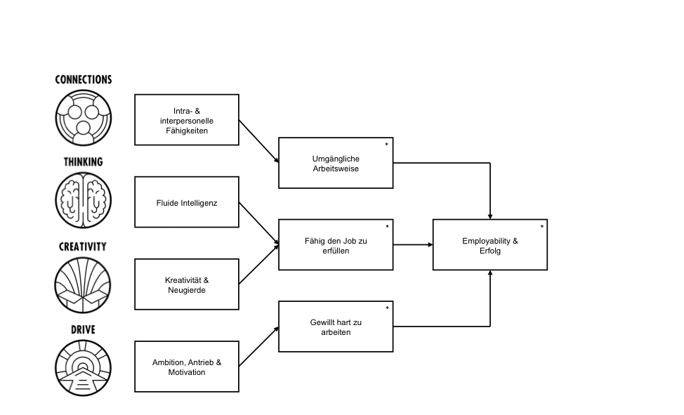 Der zentrale Wettbewerbsvorteil liegt darin, seine eigenen Fähigkeiten, Stärken und Schwächen zu entdecken und diese auch mitteilen zu können. Kostenlose Online Persönlichkeitstests wie der Red Bull Wingfinder geben ein maßgeschneidertes Feedback, welche diese sind und wertvolle Coaching Tipps für den nächsten Job. Was Sie für jede Rolle in einer Firma brauchen, sind die sogenannten „RAW-Komponenten“ in Bezug auf Ihre Talente. (Rewarding – intrapersonale und intrapersonelle Fähigkeiten; Able – eine Fertigkeit oder Intelligenz, die dem Anspruch der Rolle entspricht; Willing – Antrieb und Motivation).
