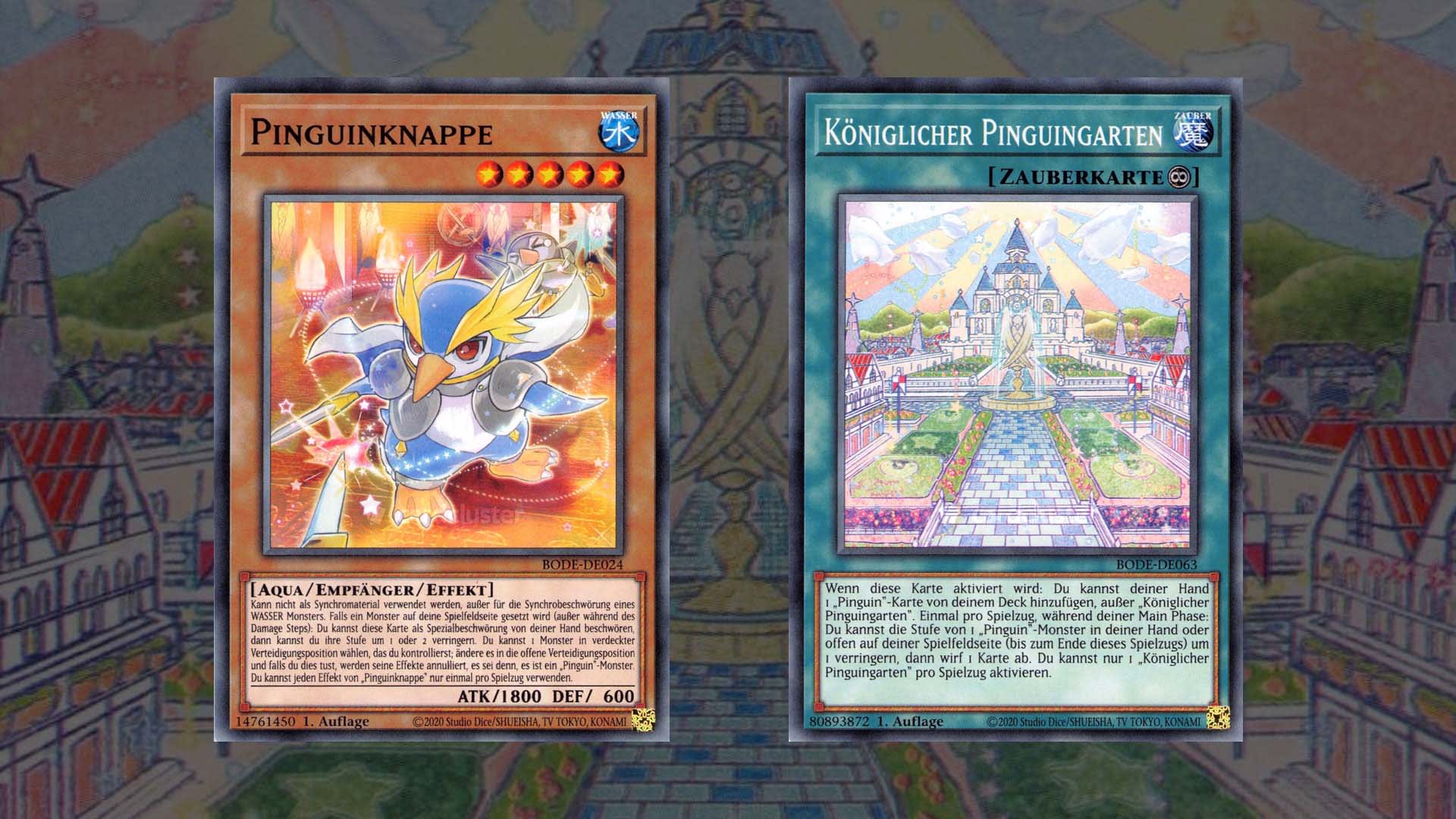 Aber auch existierende Strategien haben in den vergangenen Monaten support erhalten, der noch nicht in Master Duel verfügbar ist. Pinguine werden durch die Ergänzung von Pinguinknappe und Königlicher Pinguingarten kein Meta-Deck werden, aber bekommen hier einen Sucher und tollen Starter. Mit seiner Fähigkeit einen Pinguin in seiner Stufe zu reduzieren macht der Pinguingarten auch den Großen Kaiserpinguin spielbar, der damit ohne Tribut beschworen werden kann.