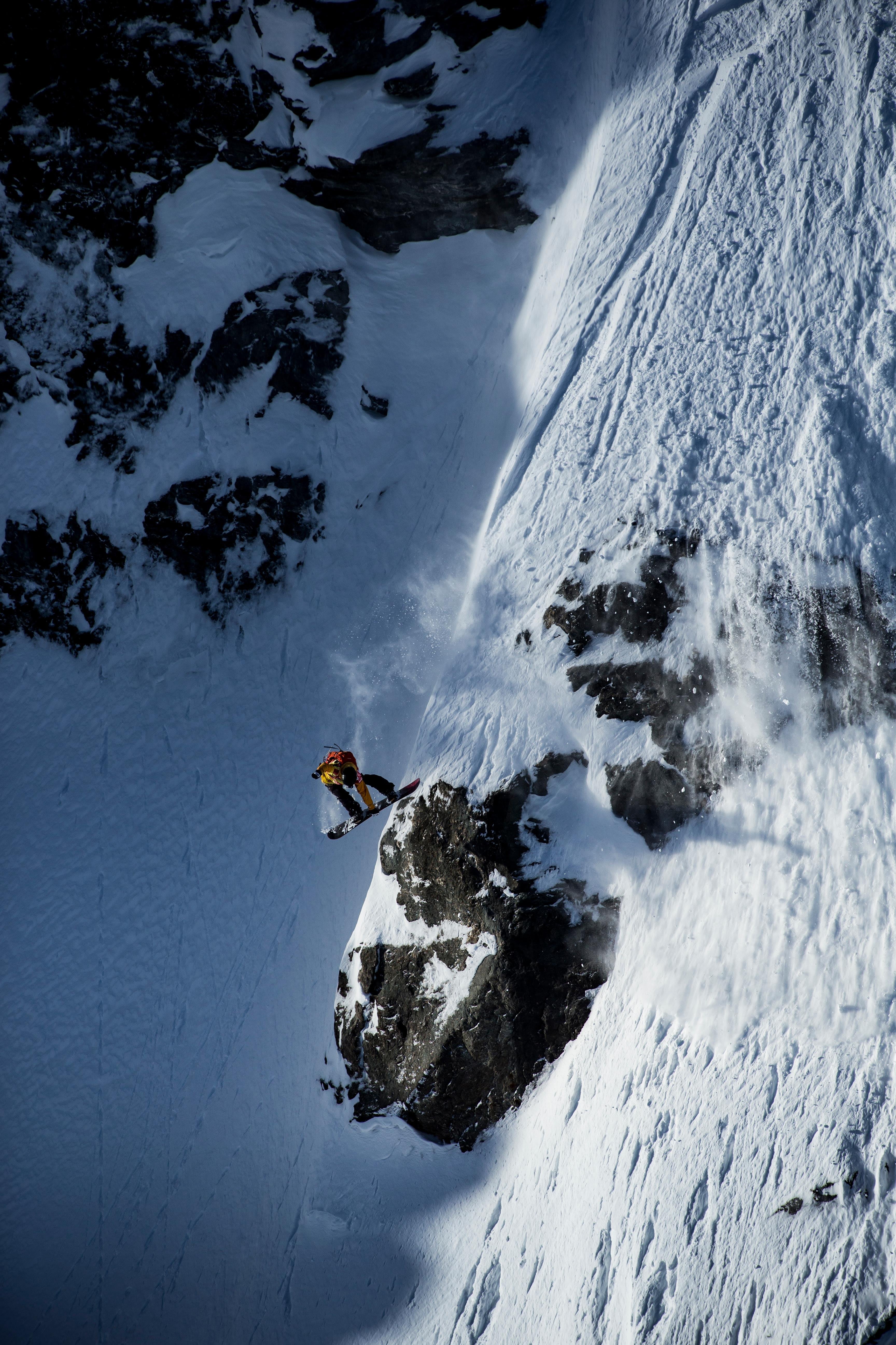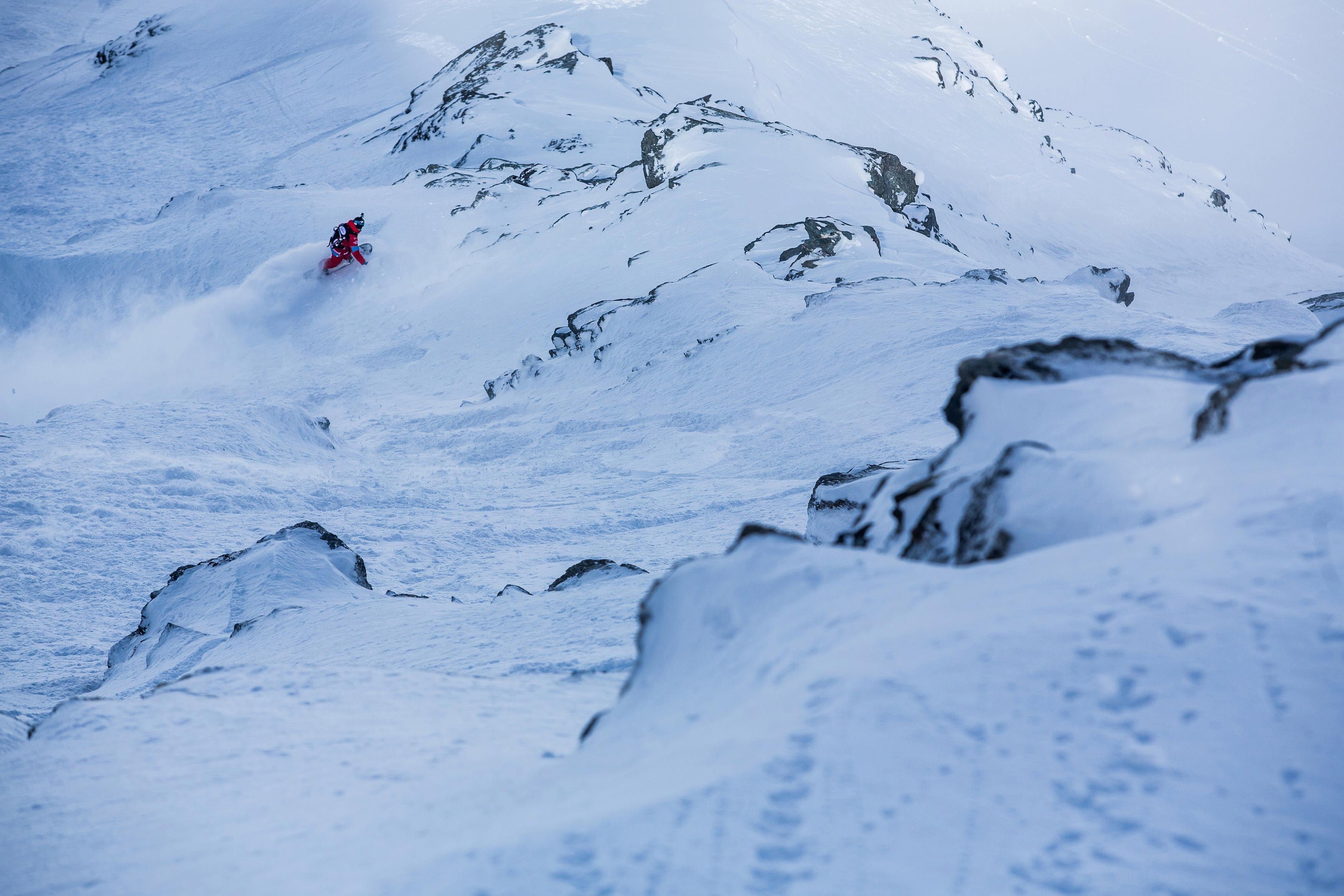The riders aren't allowed to ride the Bec des Rosses face before the competition. They can only try to find lines and gauge the height of cliffs from the opposite side, with binoculars. The organisers also provide drone footage – but to memorise a line from the frontal view and to find your exact way through dead-ends, blind jumps and invisible landings from rider’s perspective is a completely different ball game. Add to that that you never know how deep or icy the snow on the landings is – or if a treacherous rock is lurking right under the snow – and just making your way down is a serious challenge. Lastly, the incredible steepness makes the control of speed and speed checks on landings super-difficult – but crucial to survive. And if you want to win, you have to add airs, cliff drops, tricks and speed – so that’s an explosive cocktail.