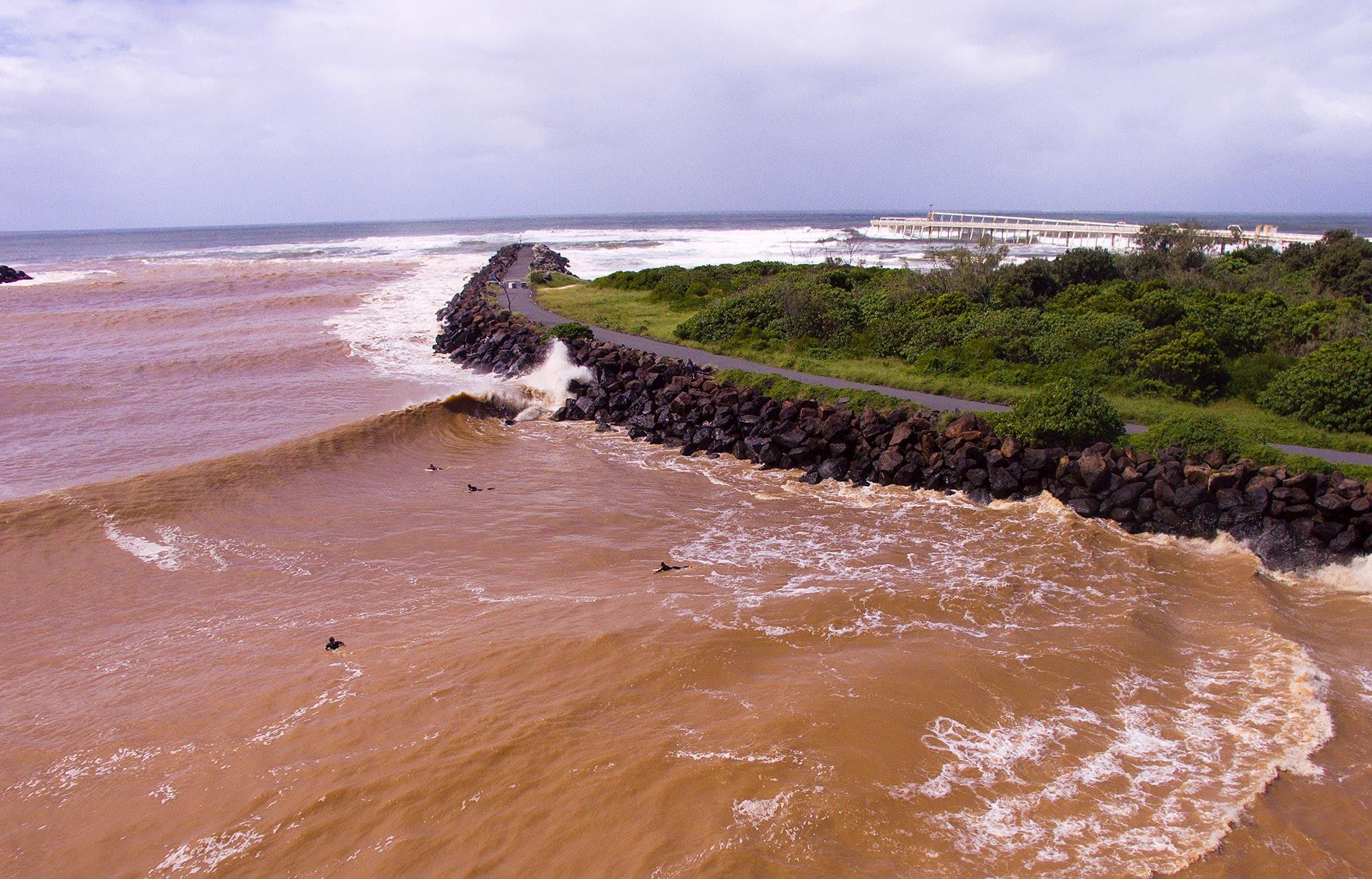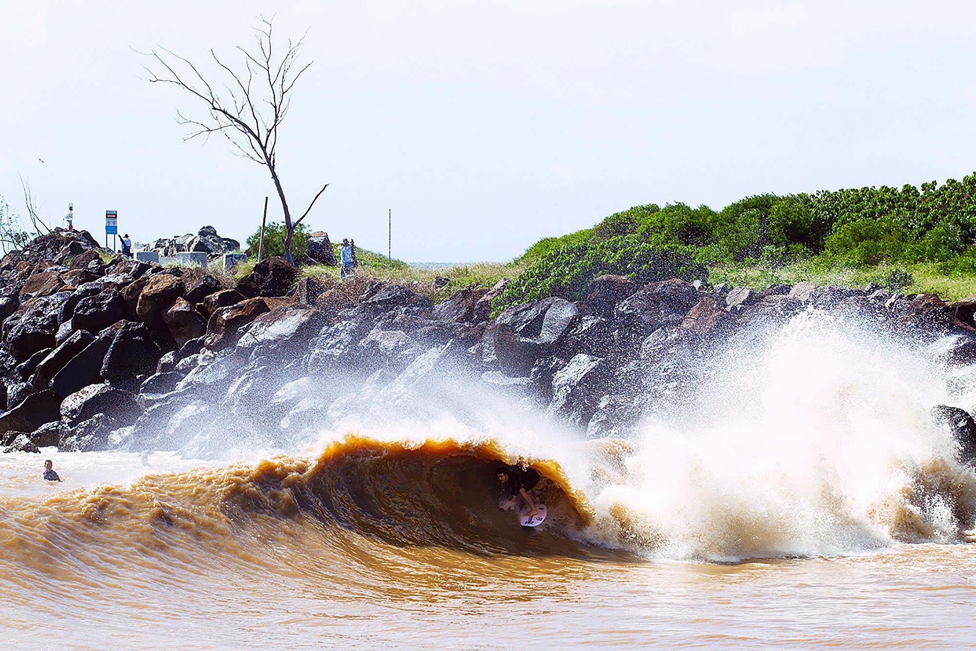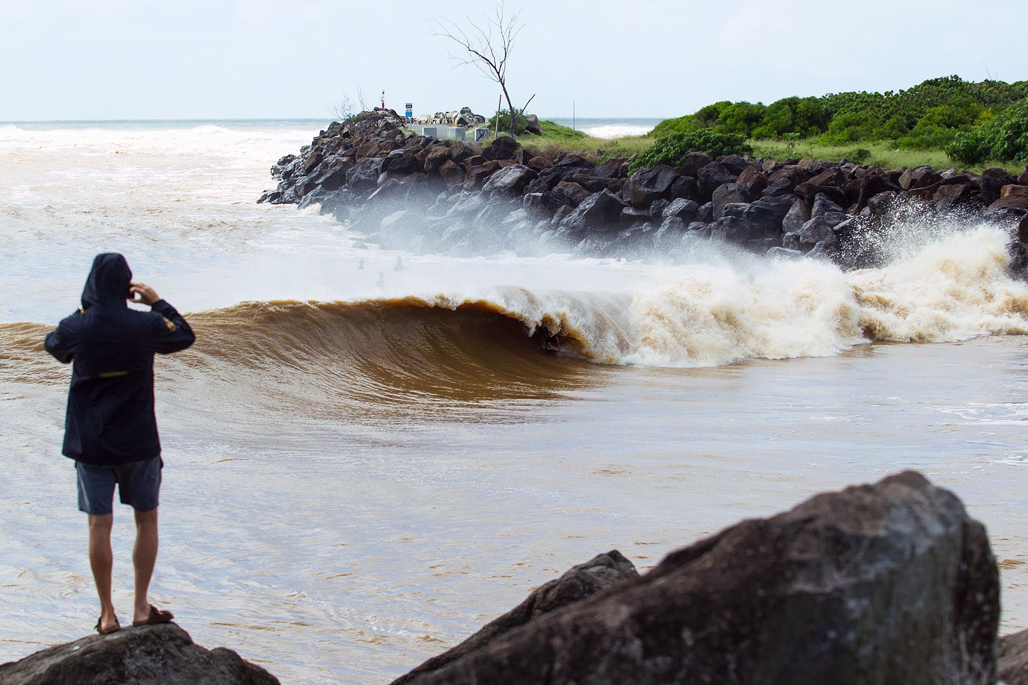 “The last memorable swell in the river was in April 2017. After a couple of weeks of torrential rain and flooding, the Gold Coast waves had turned a chocolate brown colour. The wind had been howling onshore for quite a few days as well, making for very unappealing surf, and the flooding had washed all sorts of debris out into the ocean.