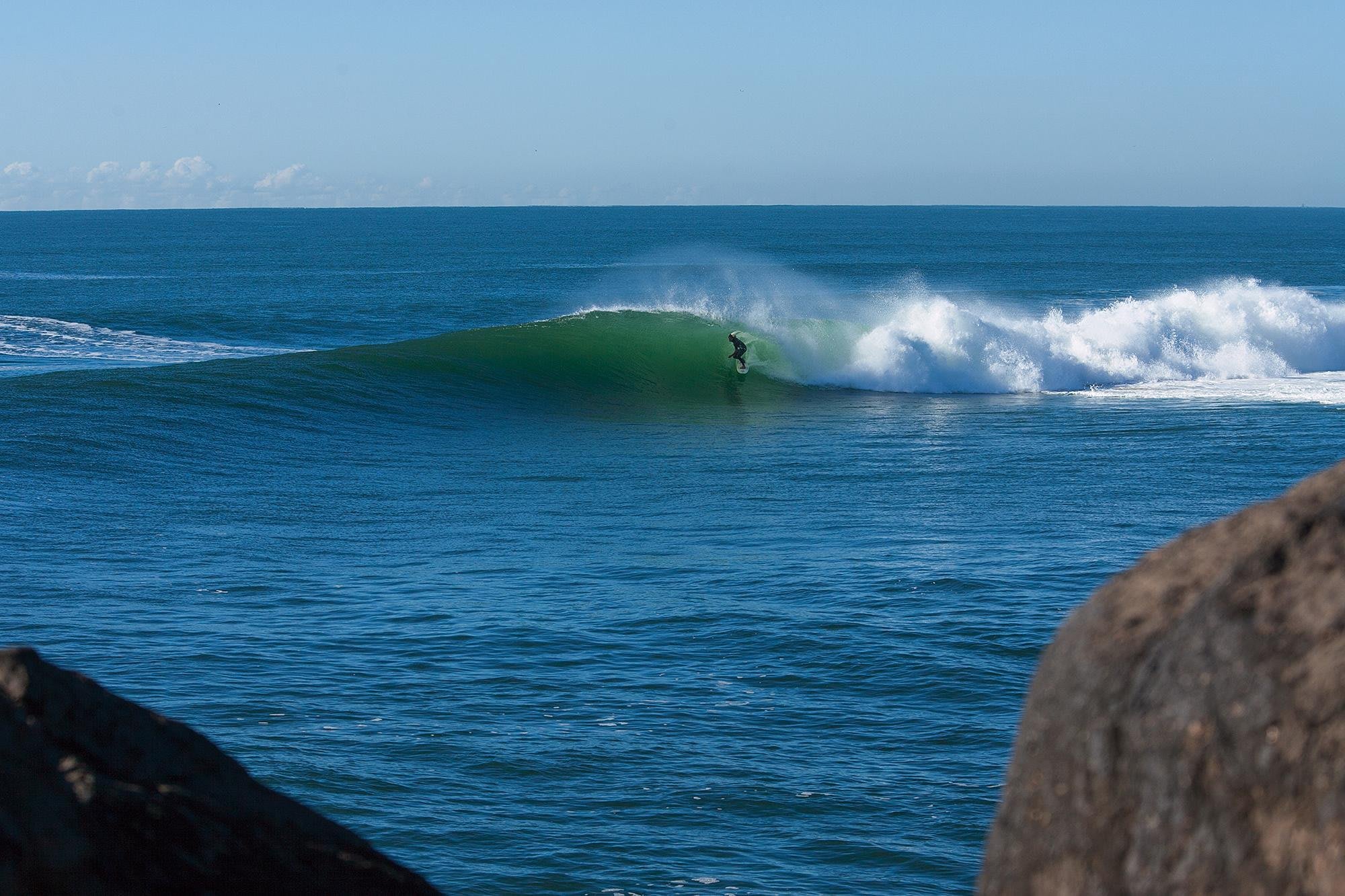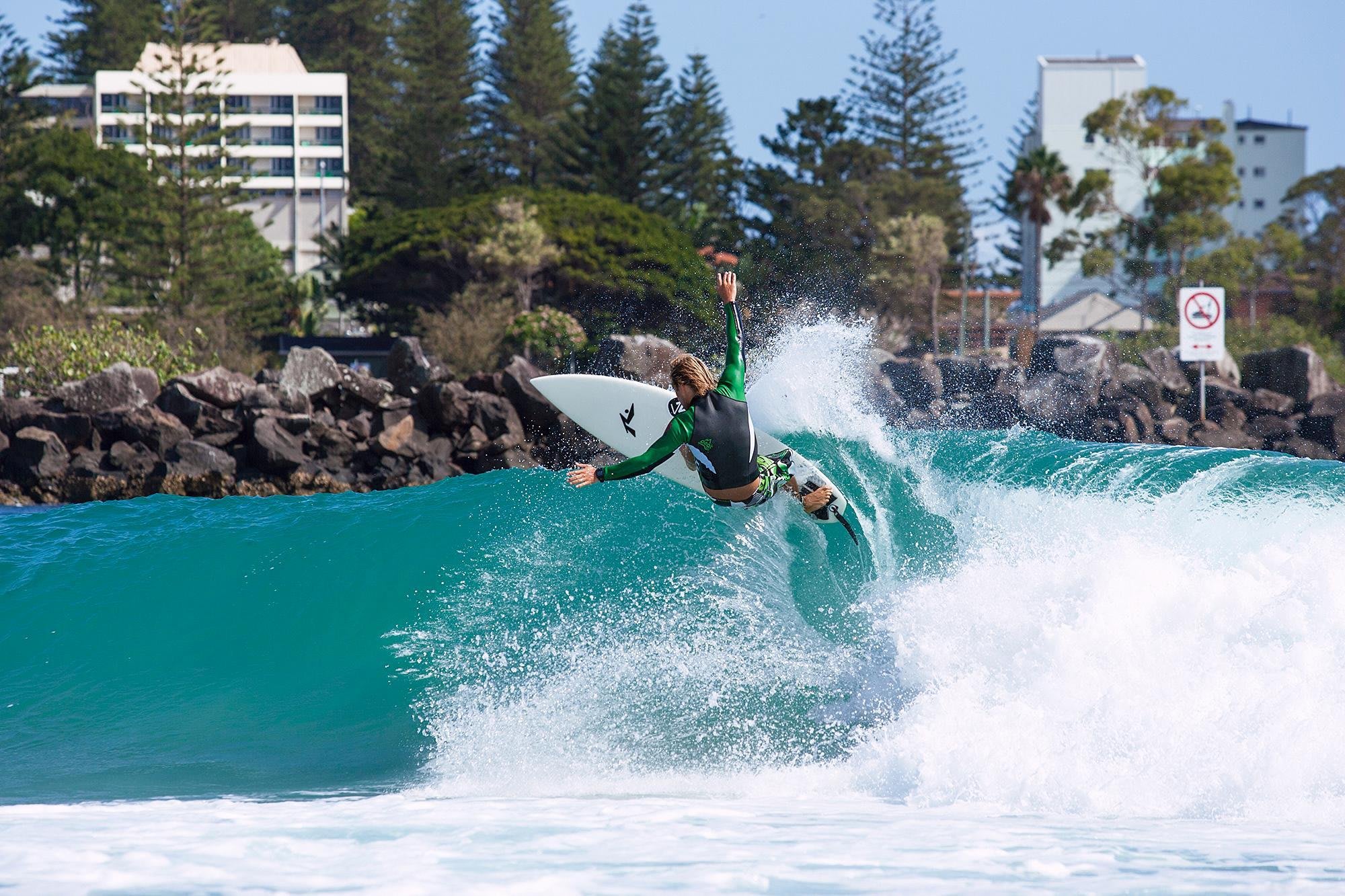 “It doesn’t happen very often, but occasionally there is a build up of sand in a couple of different locations in the Tweed River that can create this crazy novelty wave. The river flows out into the ocean just South of Duranbah Beach, which is just the other side of Snapper. That officially makes it a New South Wales beach, but Gold Coast surfers will still claim it – especially when it’s producing fun waves!