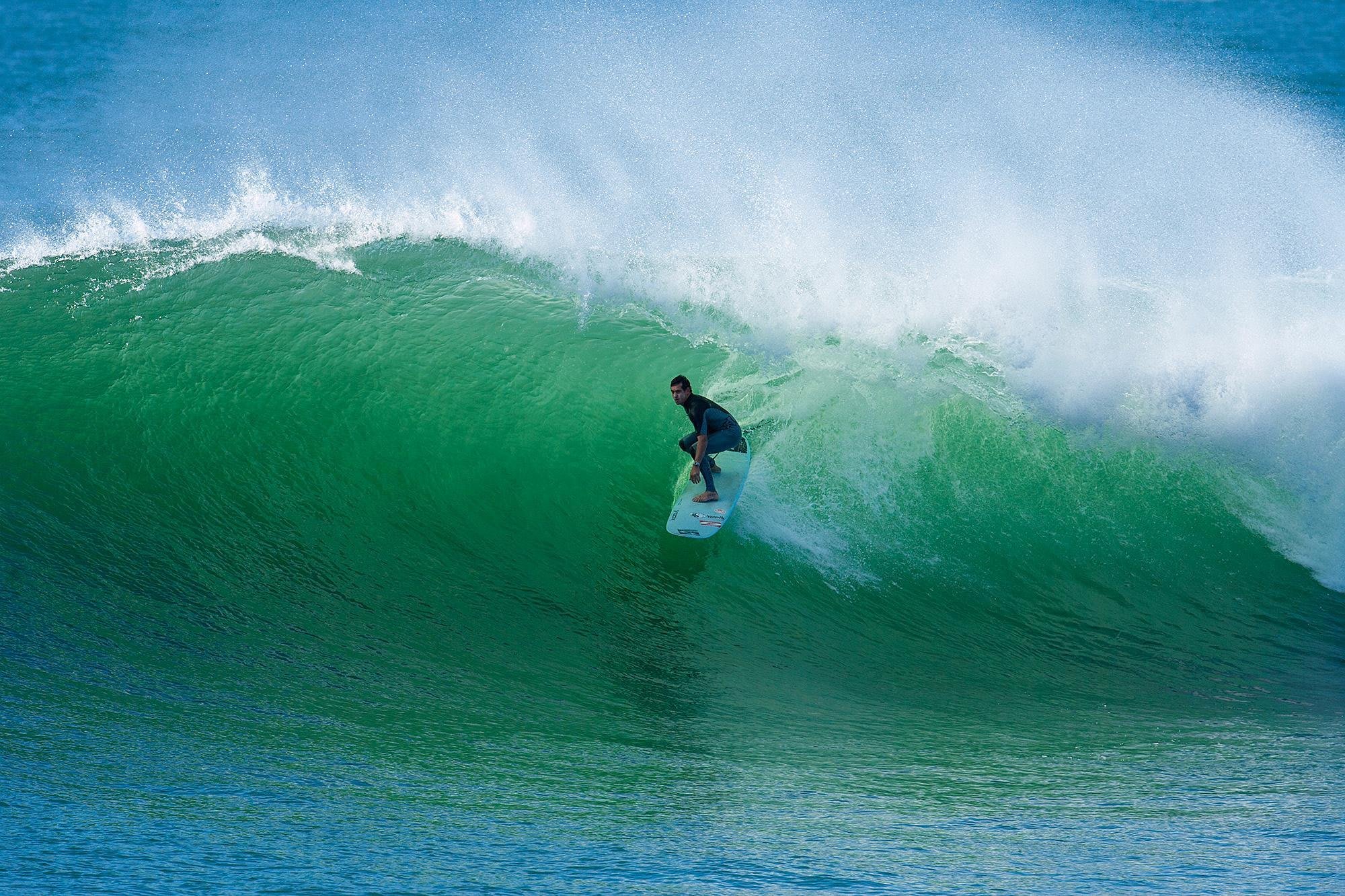 “Local surfer Korbin Hutchings caught one of the better waves of this swell. A long barrel that was so dark he would’ve felt like he was in a cave. The ear and throat infections suffered by most of the guys who surfed this swell was no real deterrent, and I’m sure next time it breaks they’ll all be out the again.”