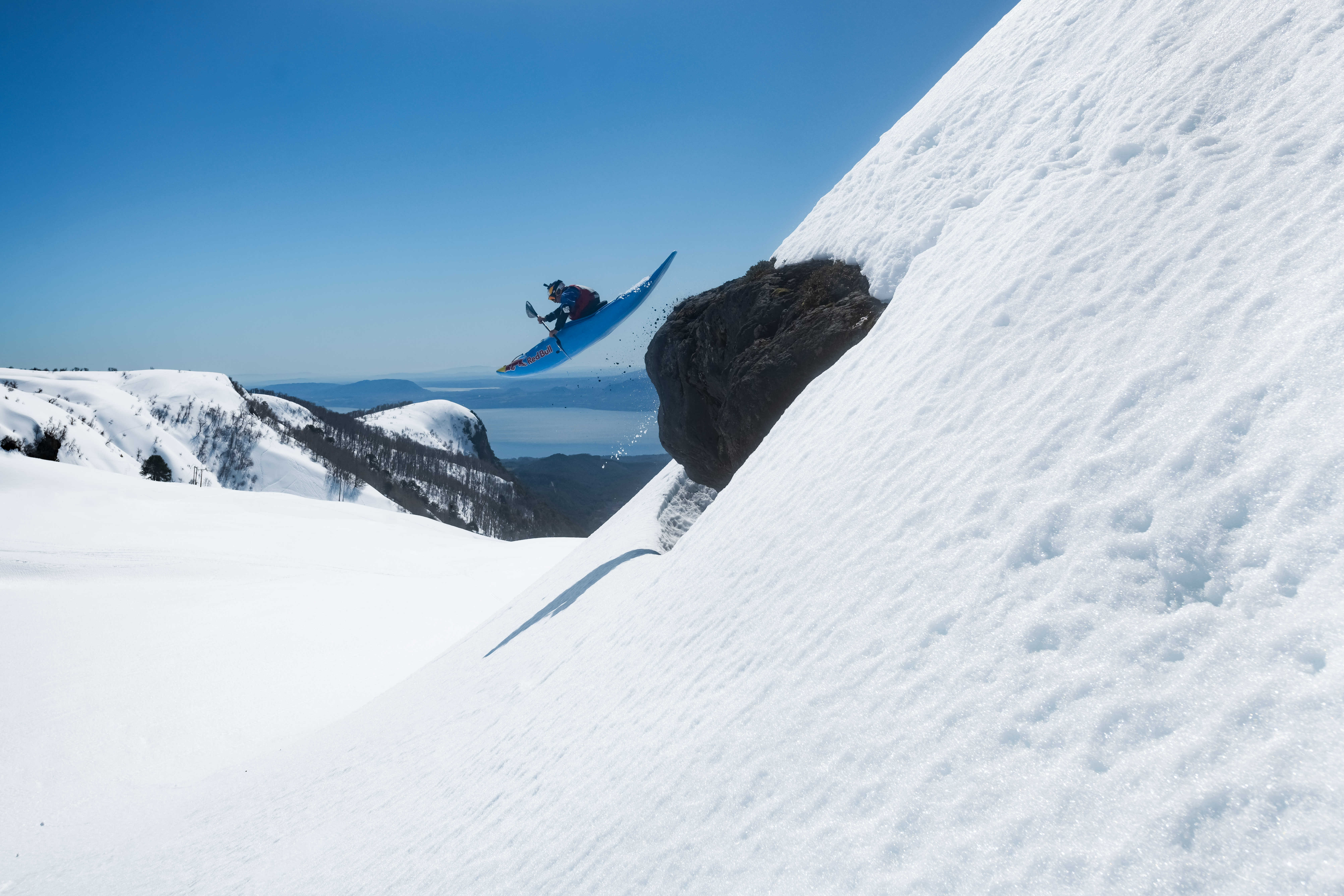 The ambitious project didn’t go hitch-free, though – the high speed the kayak reached when gliding over the snow caused a spectacular crash. "The part on the snow was kind of the hardest part as a kayak is not really made for the snow, so you ride it like a sled. You go really fast but you’re kind of out of control. On one of those descents I lost control before reaching a section with ice blocks. I hit one of those blocks at about 80kph and it sent me flying more than 10 metres. I tried to control it in the air, but in the end, I ended up falling on totally hard snow."