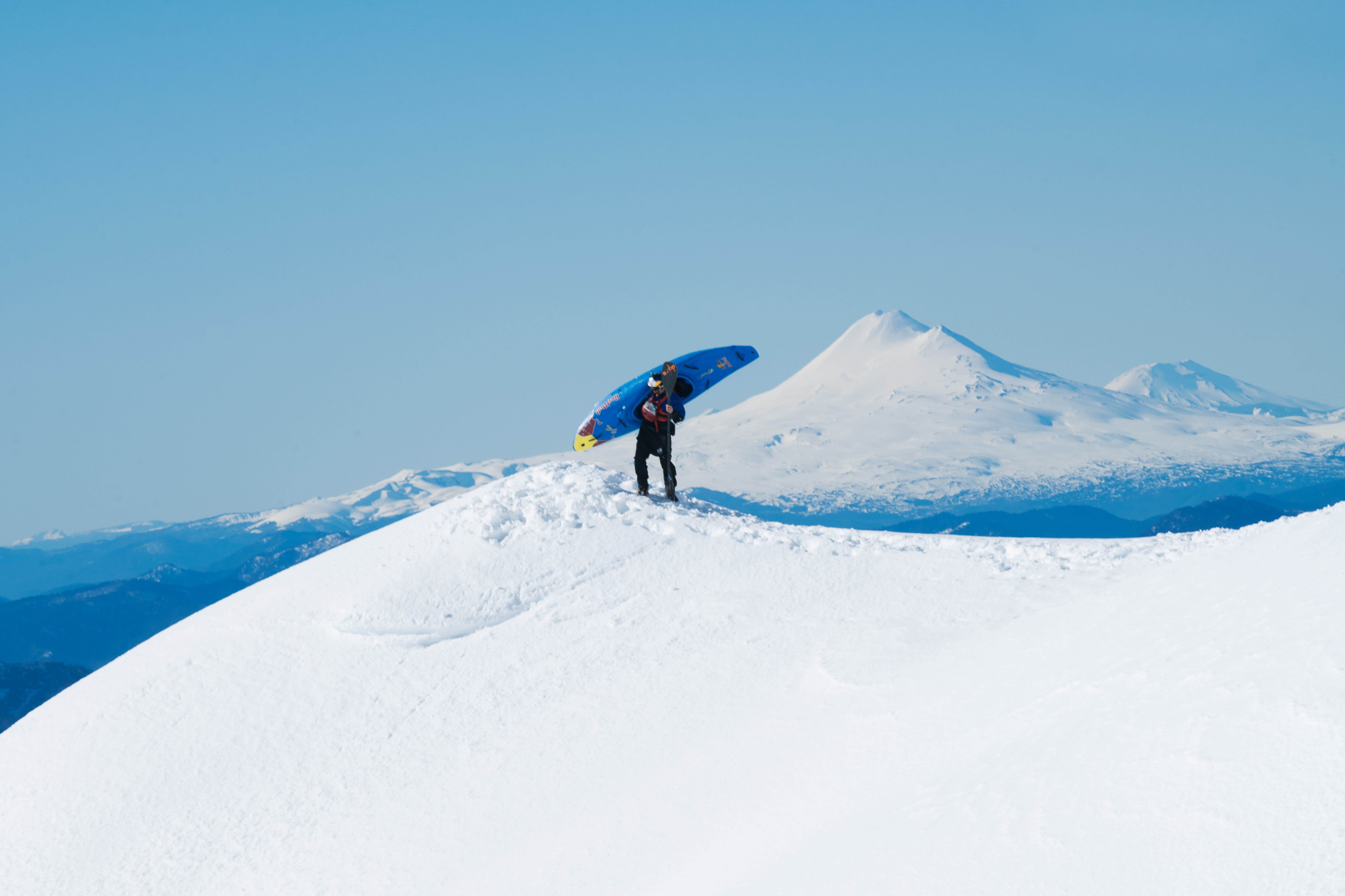 "I've always wanted to kayak down the snow and unite the four elements of earth, air, water and fire," says Serrasolses. "Taking advantage of the great winter that Chile experienced in 2020, and the difficulties to travel due to the situation we live in, I decided that this was the year to develop the project."