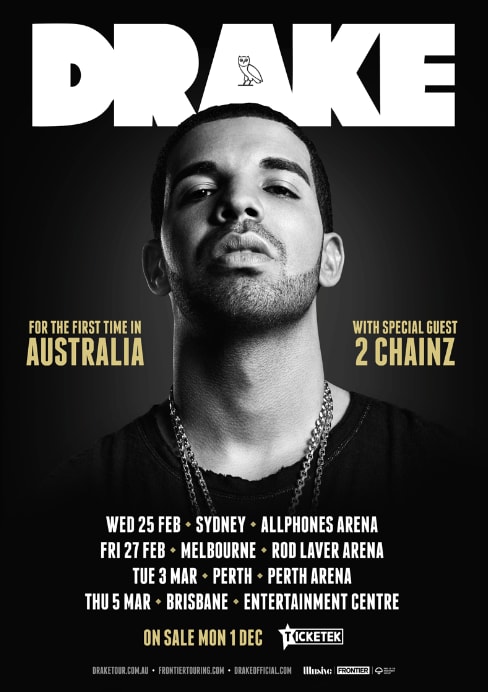 In between the festivals, Drake also played his first-ever Australian shows. The arena dates hit right after the release of his mixtape, If You’re Reading This It’s Too Late, and before 2016’s navel-gazing Views.