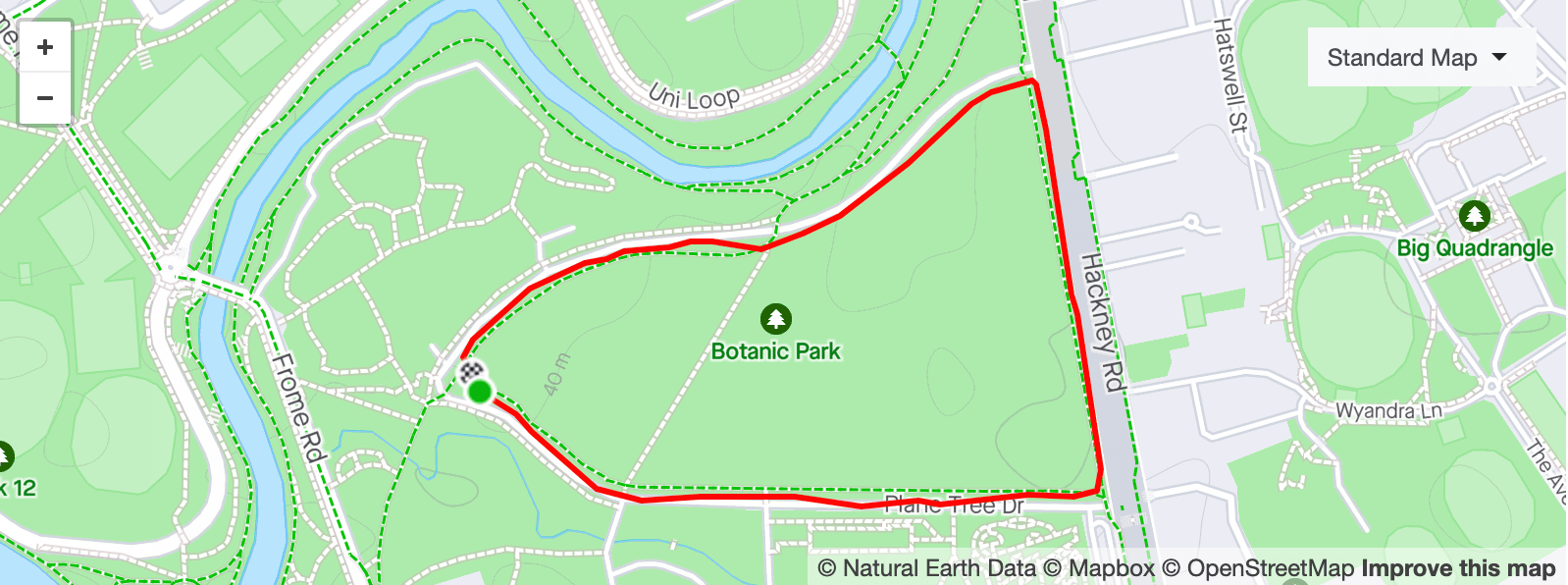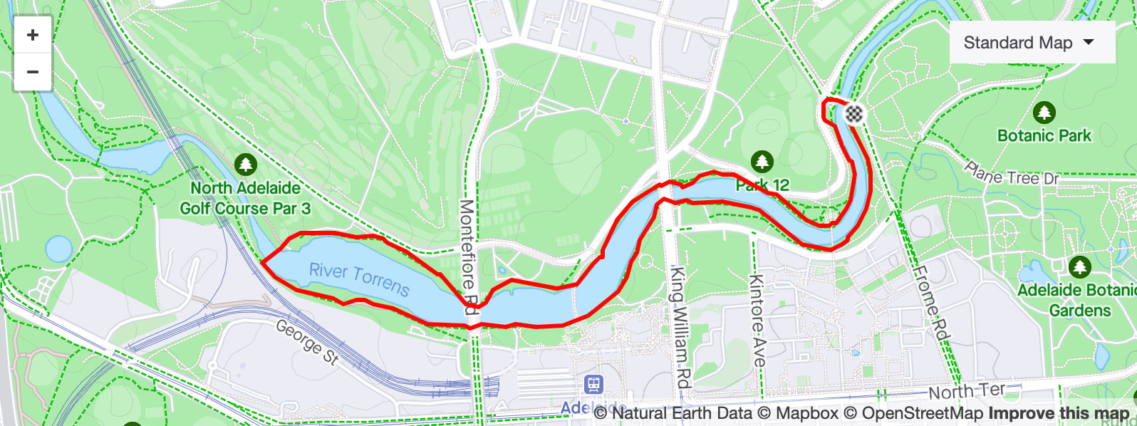 Trying to run fast while you’re in town? This one’s for you. Located in the north east corner of the Adelaide CBD, this loop is a favourite for some of Australia’s best distance runners - it’s a great place to run repeats if you have a big workout to do. Like most things in Adelaide, it’s close to parklands and the river, so it’s popular to warm up nearby, then hit Botanic Park for the session. It’s a beautiful, tree lined loop offering plenty of shade as well as shelter from the wind, so on a hot day this is a great place to be.