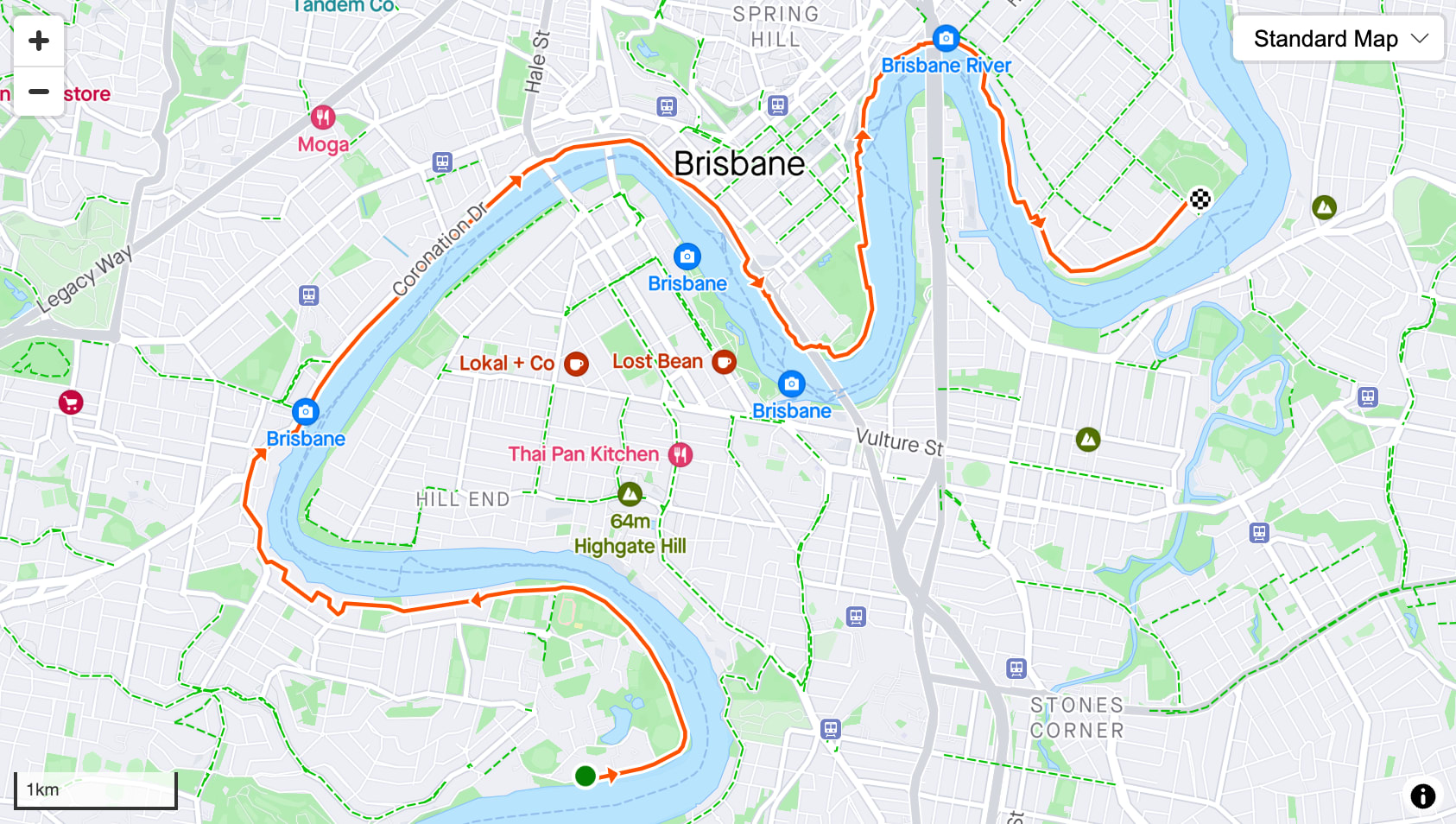 It’s easily extended if you’re looking for 10km or more - you can simply run further west along the Brisbane River before crossing over to head back.