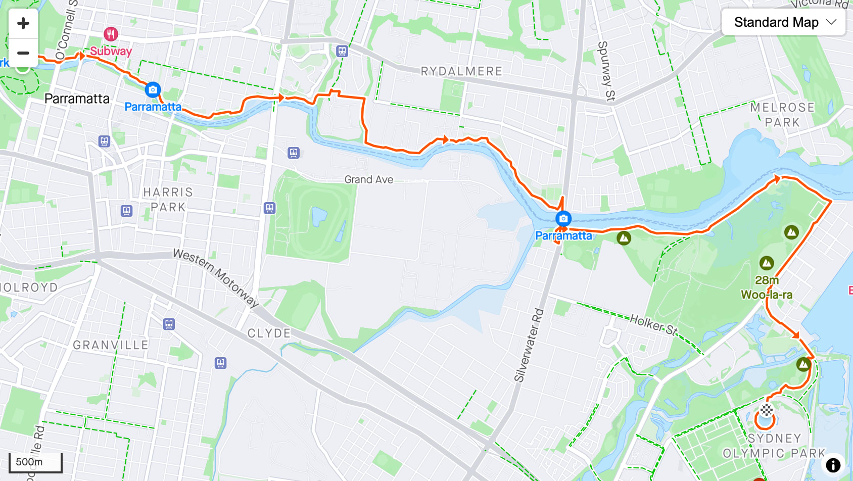At around 7km (depending on exactly where you start) you will cross over the Silverwater Rd Bridge path - you can’t go wrong here. The path does get a lot more scenic from here on - you can really just zone out and enjoy the run without having to think about turns or directions or looming hills.