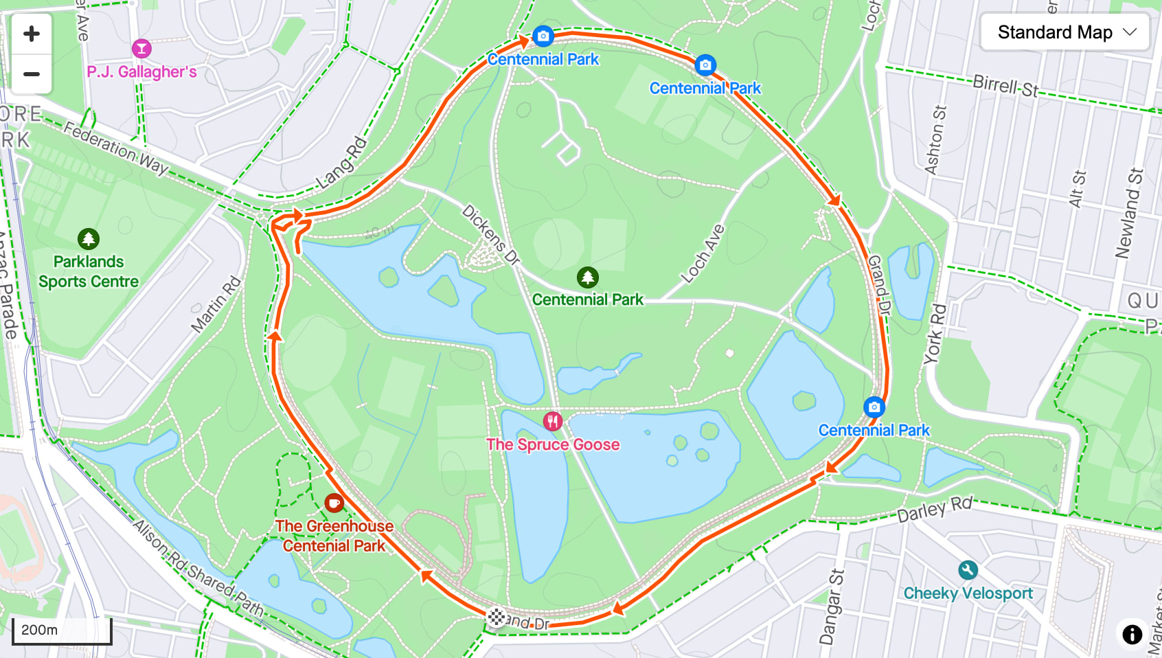 The park itself is quite big, its fringes sloping down like a bowl with the main road and pedestrian path in the basin. The main running loop is 4km and quite flat, with the option to add some hill repeats on the fringes. If you’re there on a Saturday there’s a very popular Parkrun. It’s also known to be a great place for workouts - from long thresholds to interval work and even long runs, Sydney runners have been making the most of Centennial Park for decades.