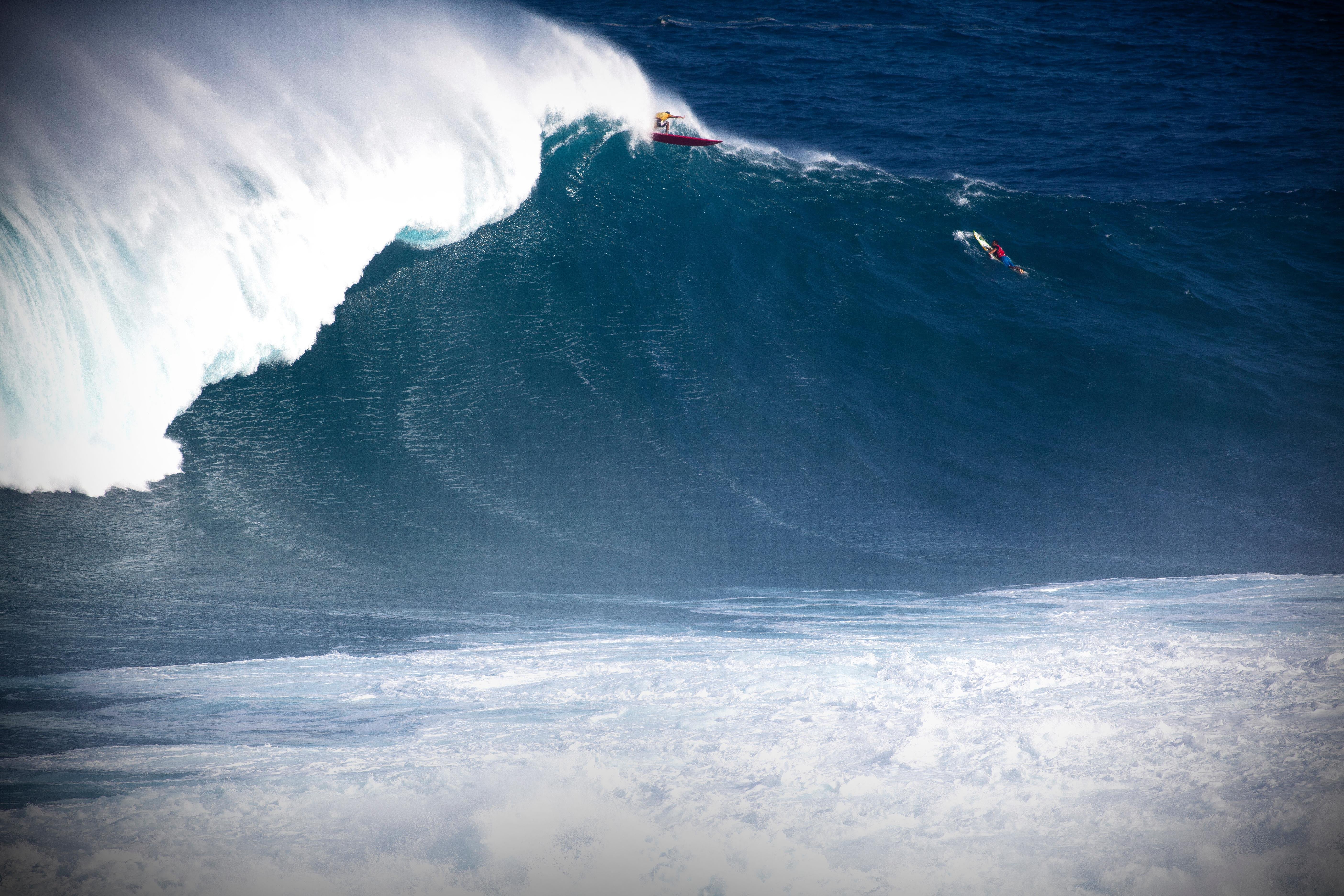 Then, there’s Red Bull athlete Kai Lenny, widely regarded as the most well-rounded waterman in the world, who has landed a full rotation air on one of these waves.