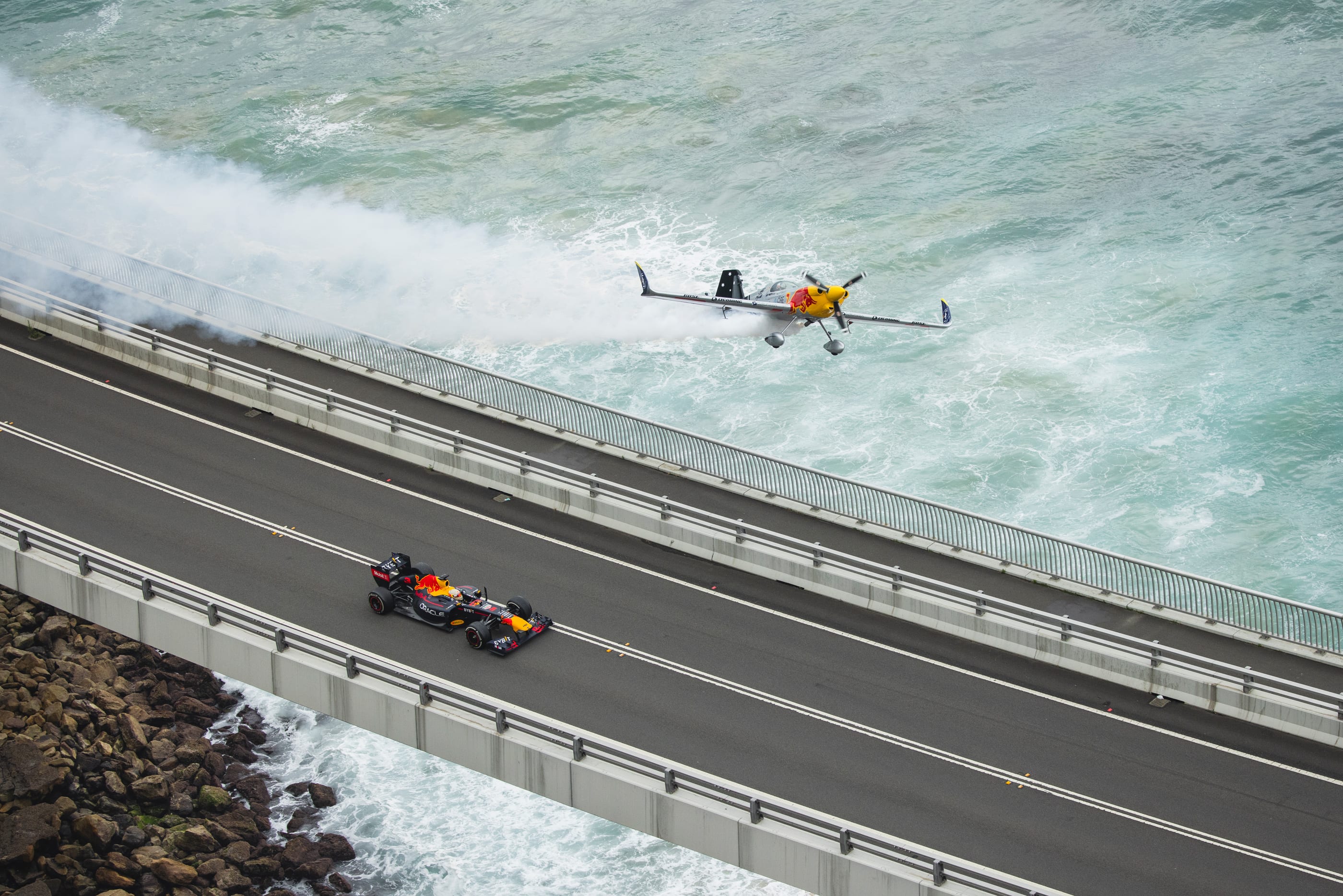 After completing the first challenge it’s time for a quick pitstop before heading out to the Sea Cliff Bridge. Here, Ricciardo is met by aerobatic pilot Matt Hall who puts him through the paces of high speed cornering across the iconic bridge. - “There’s nothing that compares to the Aussie conditions; we had a lot of fun ripping through the outback and tearing across the Sea Cliff Bridge,” Ricciardo said.