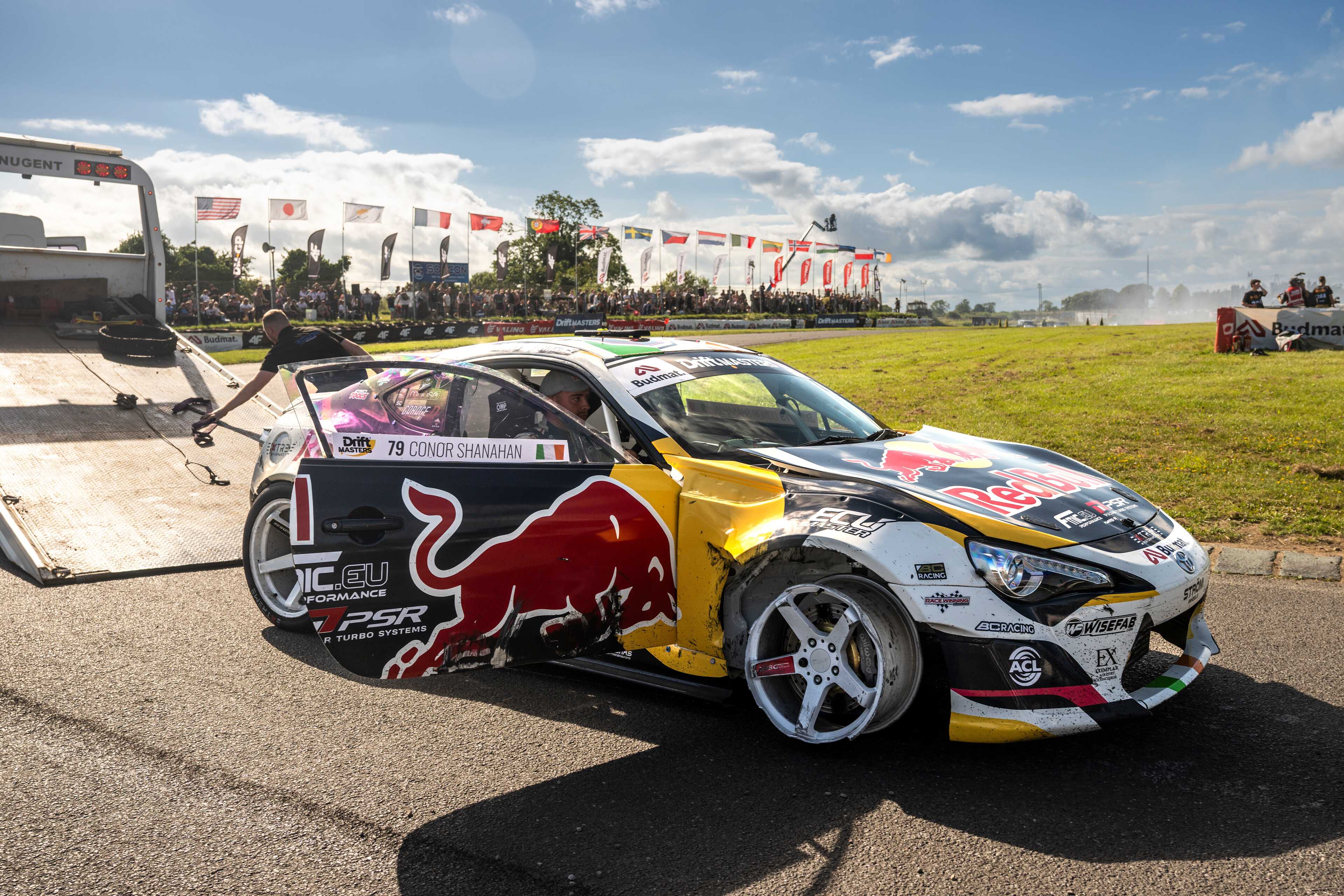 Conor Shanahan's Drift Masters championship was mathematically sealed before he had even headed down to the track for the final battle because his closest title rival, Piotr Więcek, lost out in the Top 32 when his car agonisingly shut down just before the finish line due to a frustrating mechanical failure.