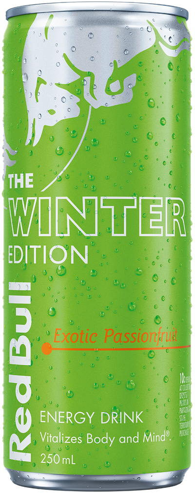 The Red Bull Winter Edition with the exotic taste of passionfruit, rounded off with elderflower notes.