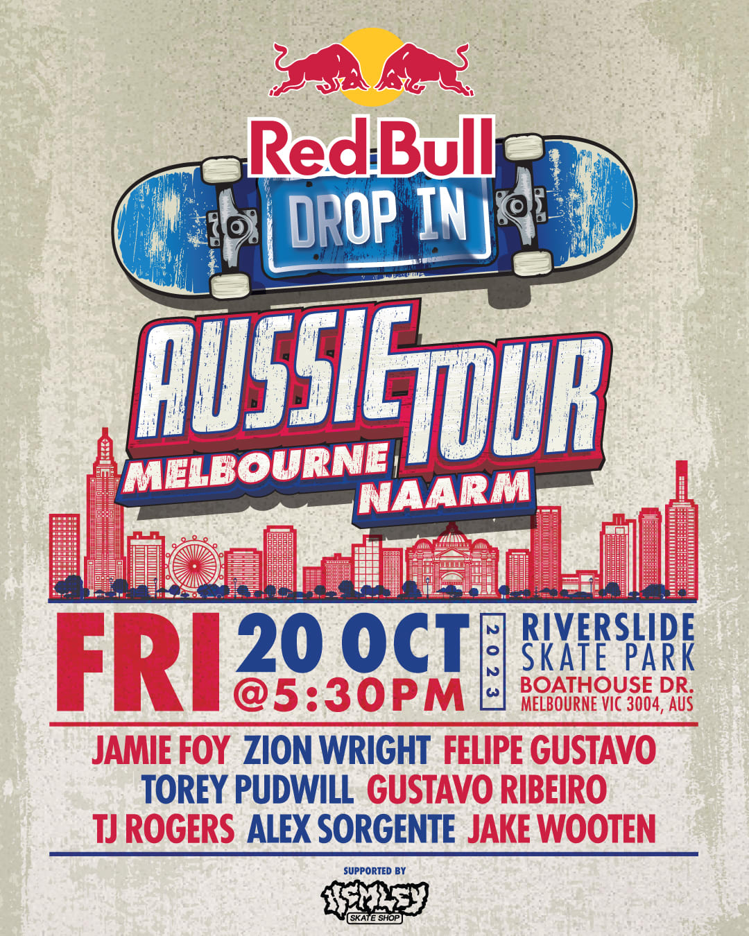 The Red Bull Skate team will be touring through the streets of Australia from October 20th to October 28th, while hosting four free action-packed skate demos along the way.
