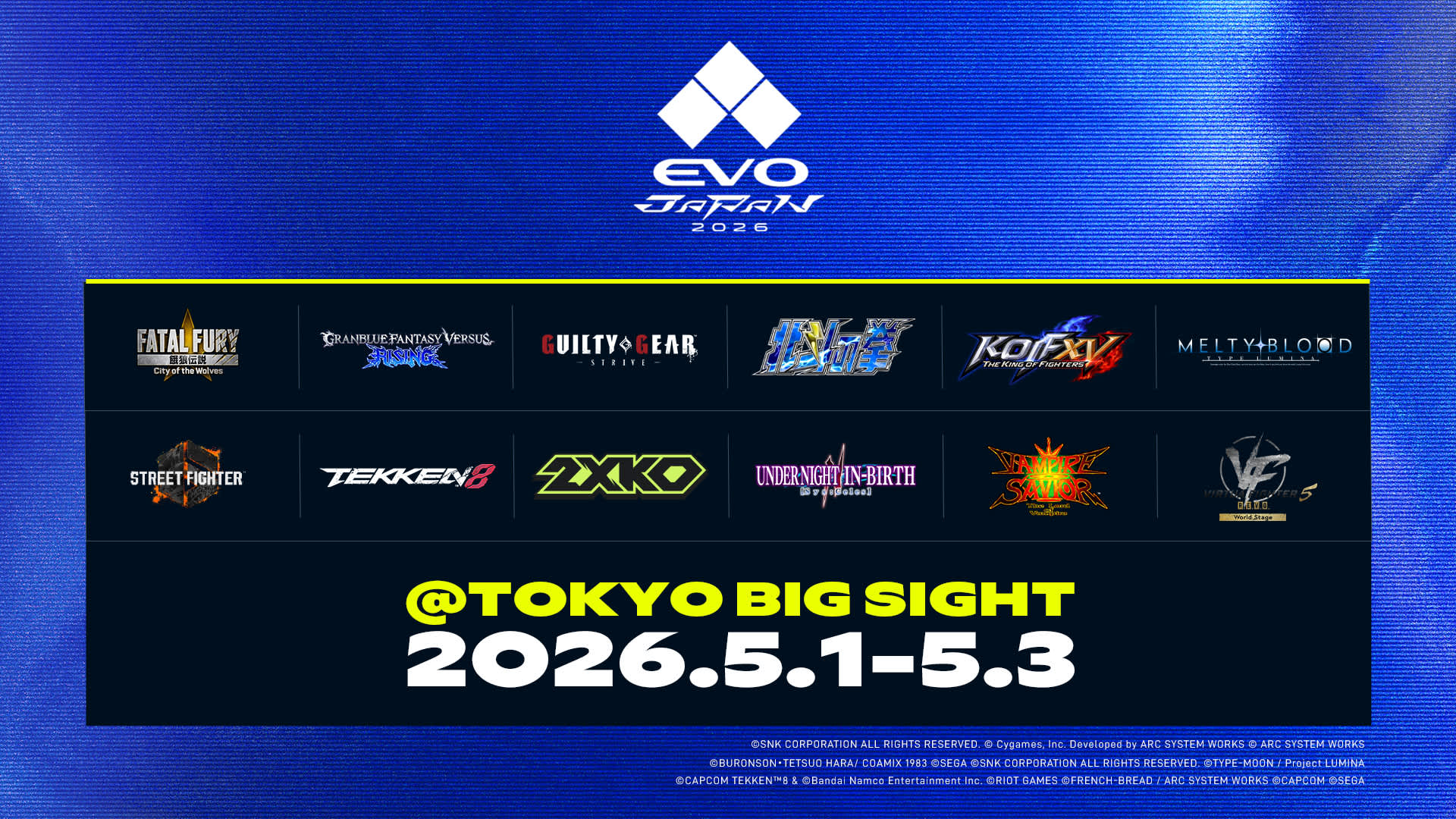 Melty Blood: Type Lumina was only a side tournament in 2025. However, it did feature on the main stage at EVO Japan 2023, making 2026 its second time in the spotlight. Similarly, Under Night In-Birth II Sys:Celes returns to Japan’s main stage for a second time after its last main lineup appearance in 2024.