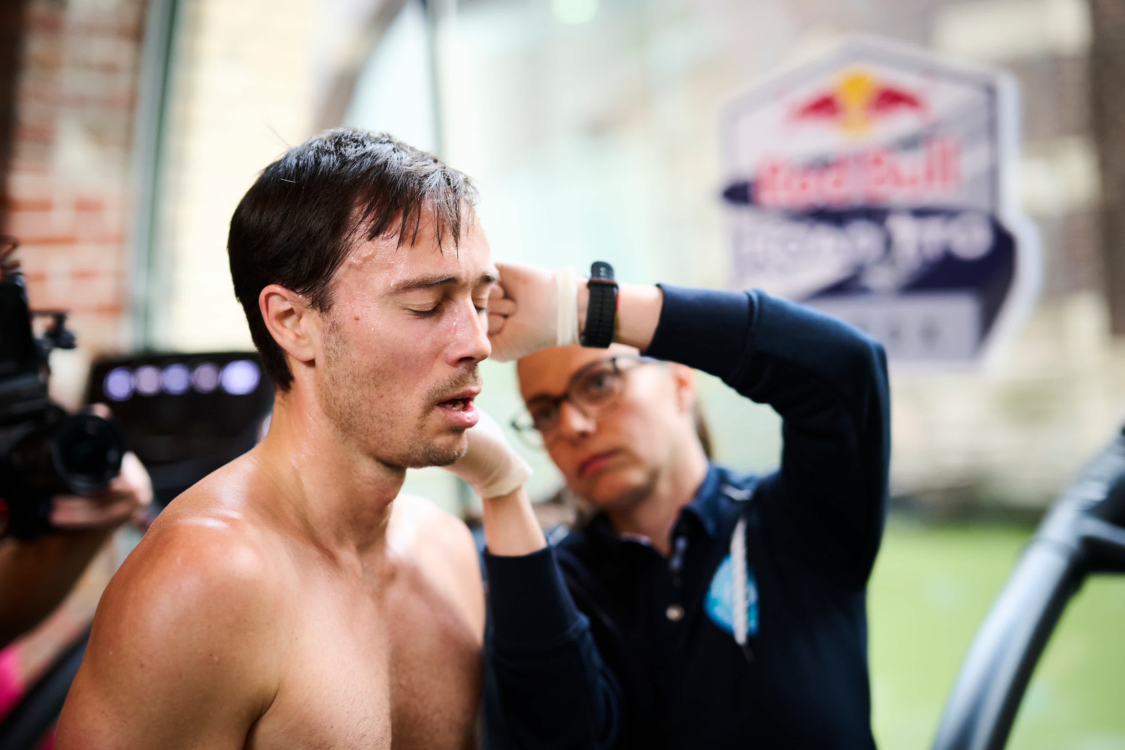 Michael Strasser gets ready for Red Bull Road to Hyrox in Vienna, Austria on December 6, 2025, showcasing pre-race focus and dynamic Red Bull energy
