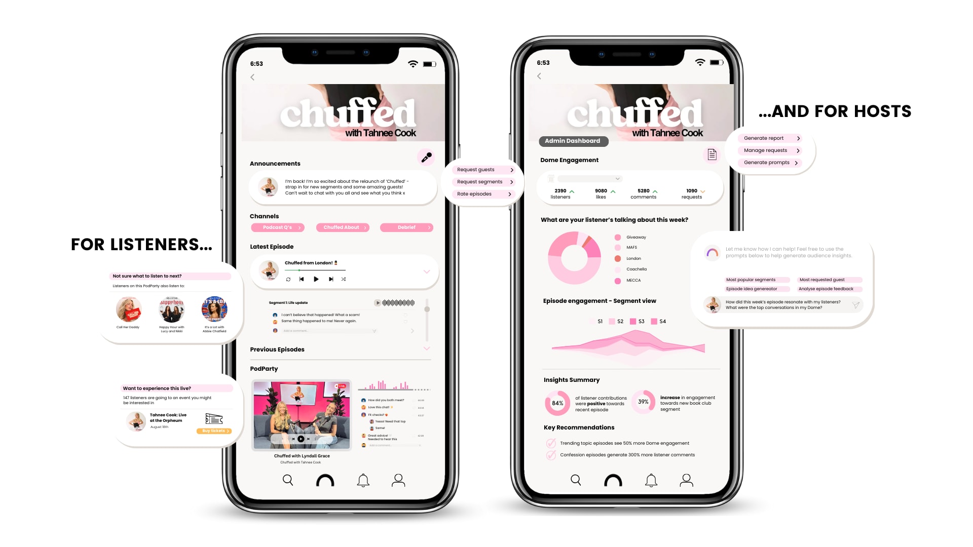 Dome changes that, and we’re the first to do it. We bring community to the core of the podcasting ecosystem, providing hosts with unparalleled audience intelligence to guarantee relevant and cut-through content.