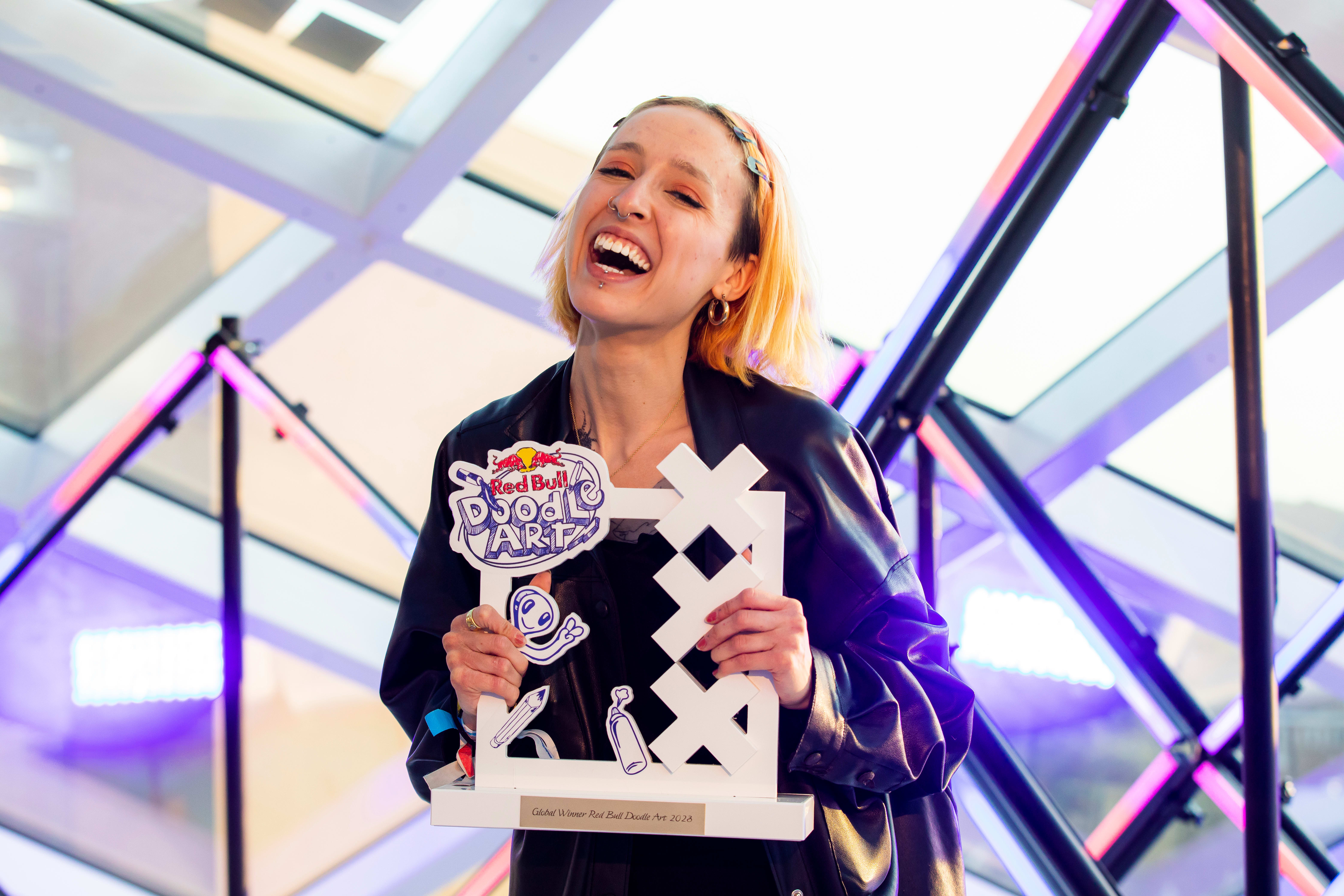 Red Bull Doodle Art winner Chiara Croce of Italy poses with her trophy