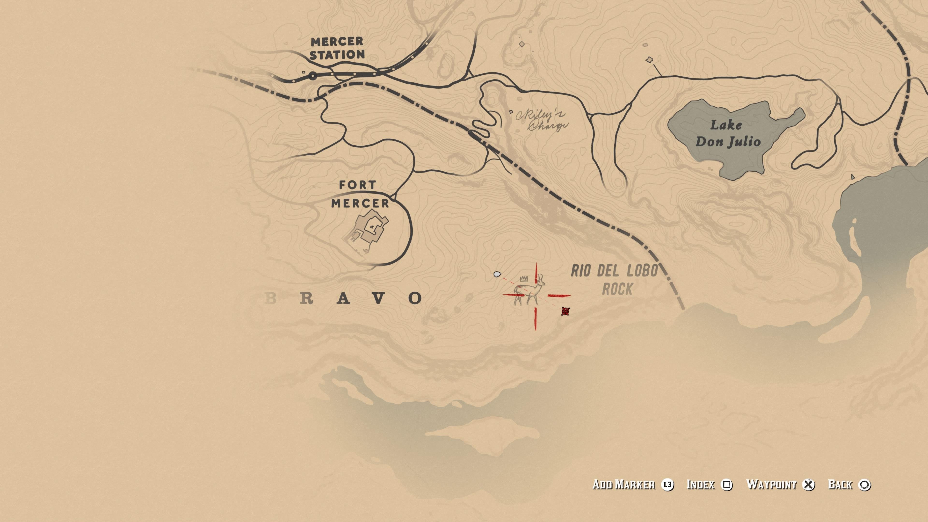 Being the most controversially named animal on this list (though the bighorn ram was in close competition) the pronghorn sure is hard to lay hands on in Red Dead Redemption 2. This one is way, waaay down in the south west of the map, near the river that borders Mexico. It's east of Fort Mercer and do be careful around that outlaw hideout. Those fellers are shooters.