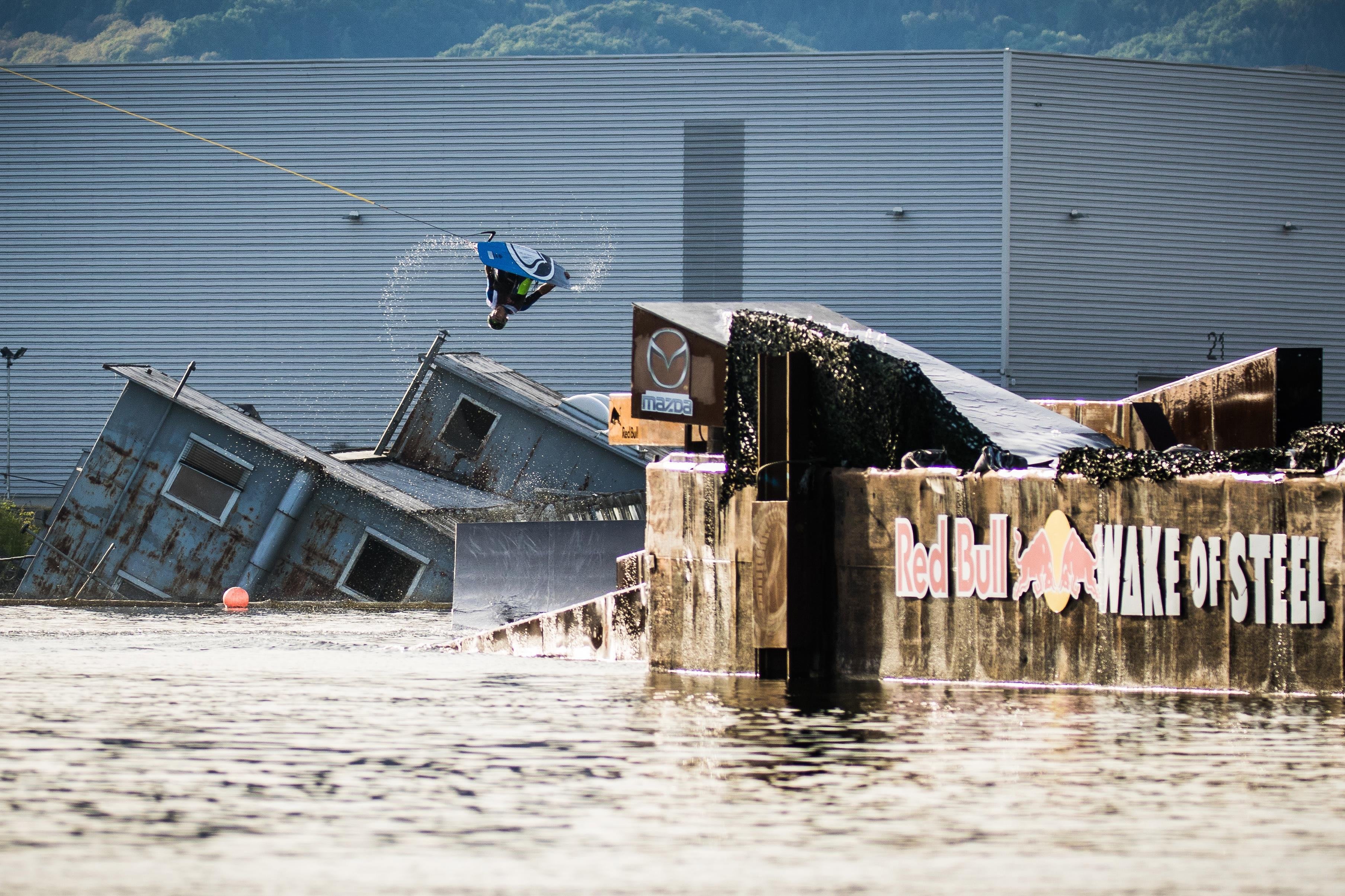 Wakeboard pro Felix Georgii makes the most of some alone time at his local waterpark in Duisberg, Germany