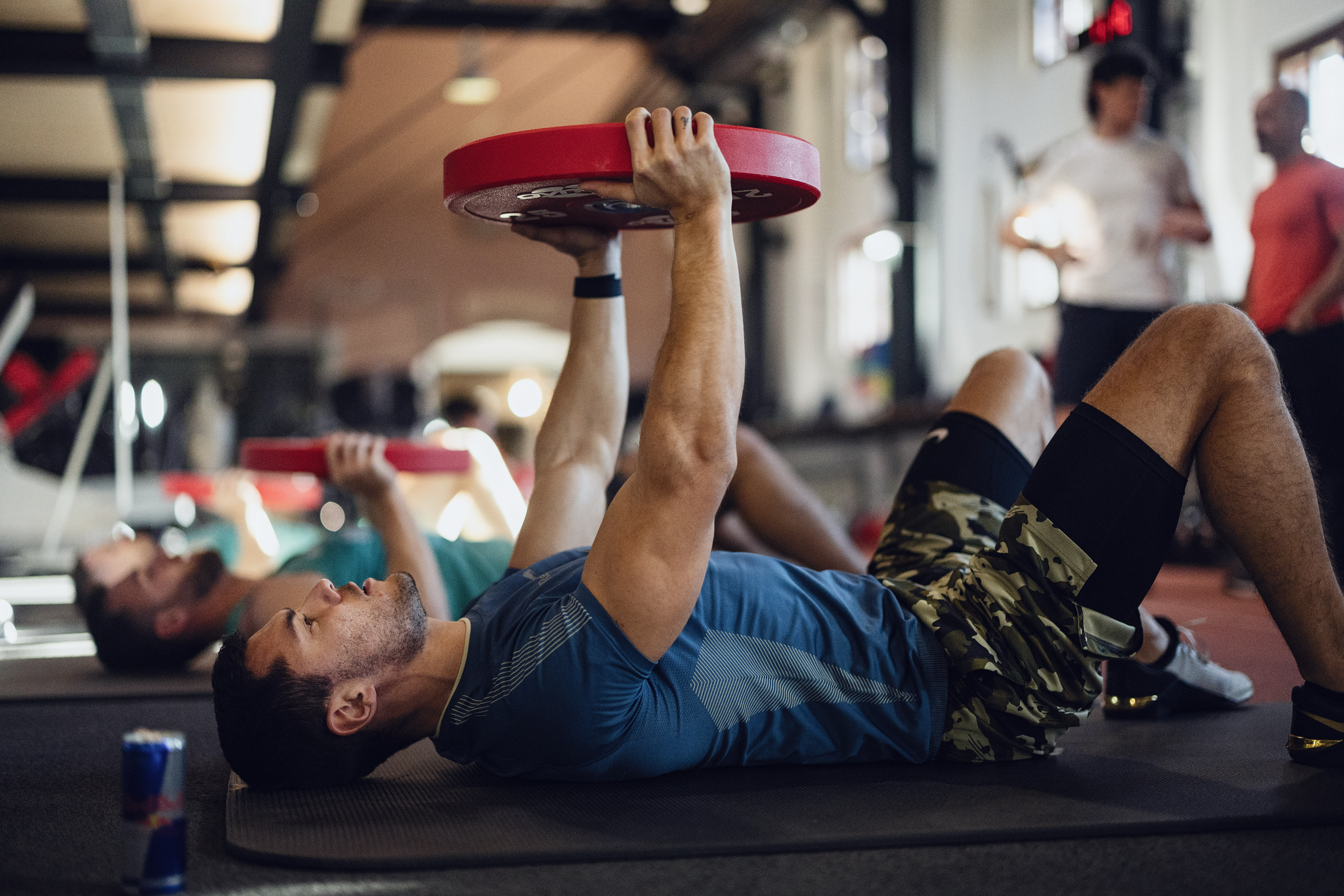 Another, more common weight-training method to improve fitness is circuit training. “There are usually around eight to 10 exercises in a circuit,” says Peat. “Do each exercise for one minute and take 30 seconds recovery between each exercise.”