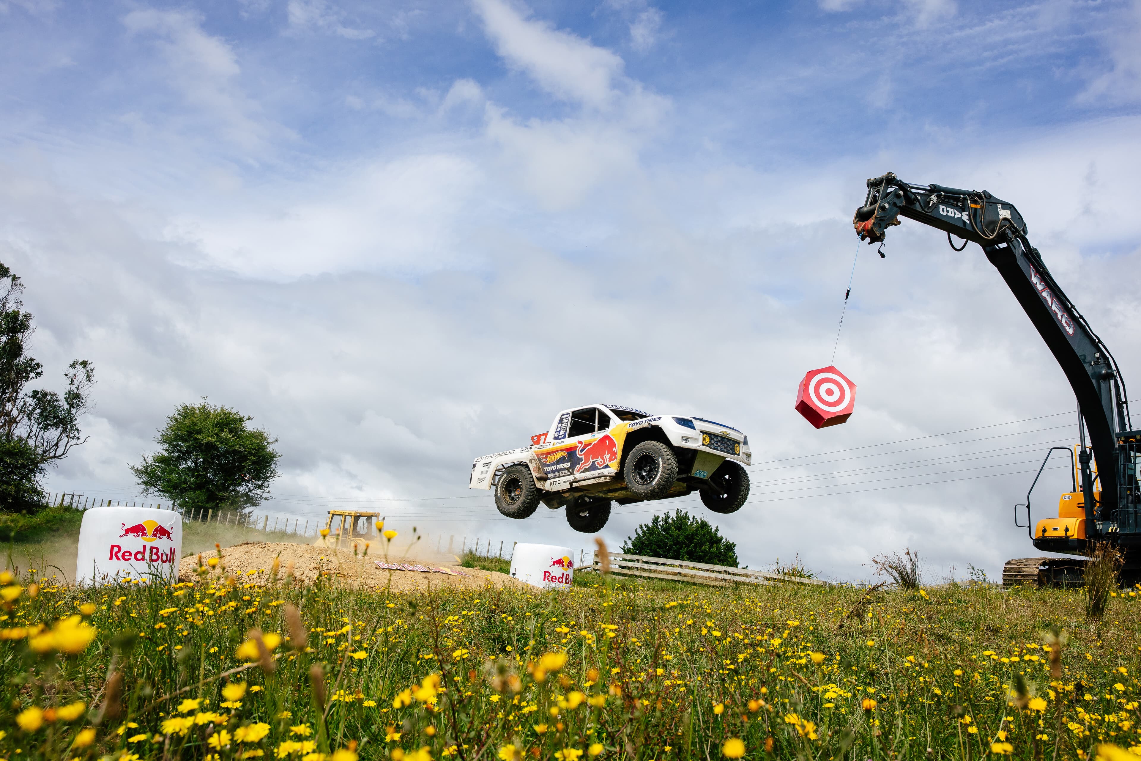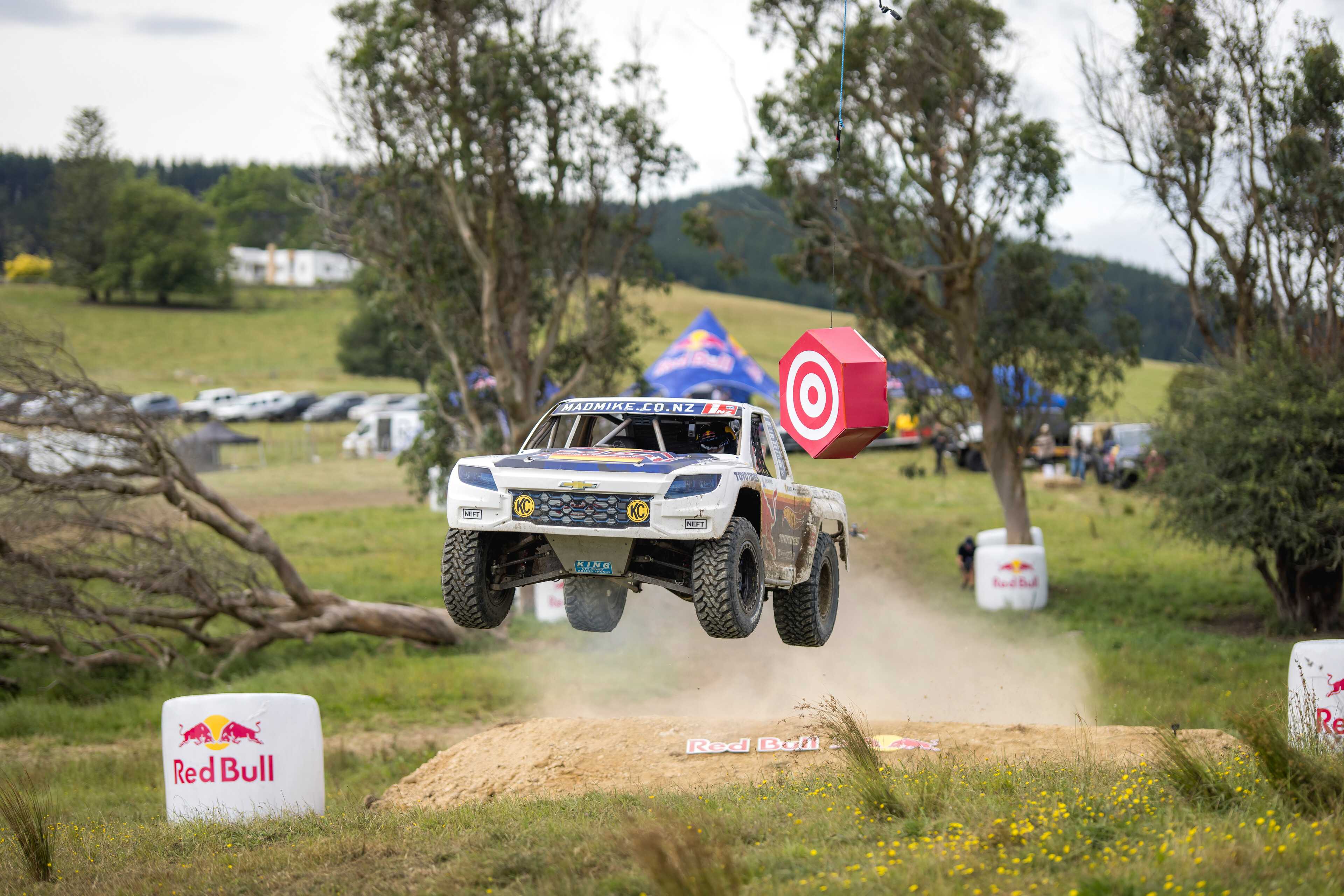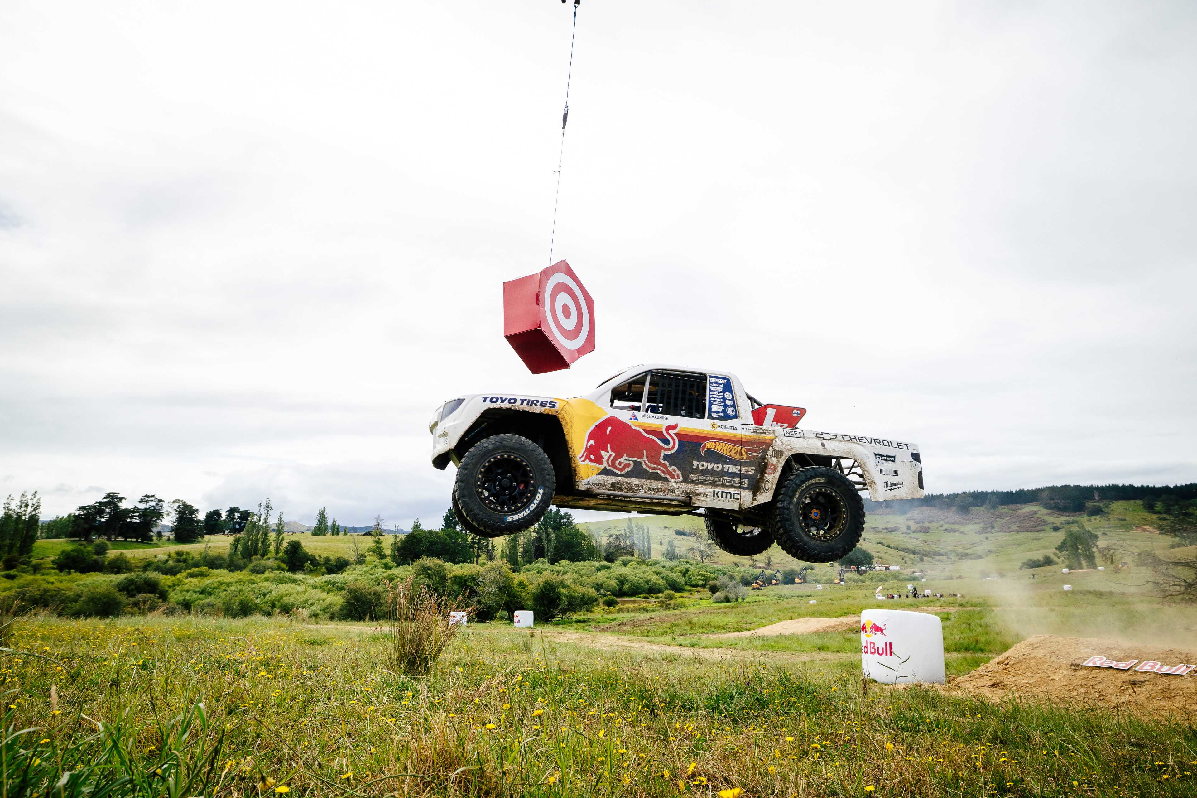 Akcija je započela Trophy Truck utrkom s mjerenjem vremena u namjenski napravljenom ProLite kamionetu Mad Mikea. Ogromni skokovi, uski zavoji i pritisak vremena nisu ostavljali prostora za grešku. Viseća meta dodala je još jedan važan faktor, jer ukoliko bi se ona promašila, uslijedila bi kazna od pet sekundi.