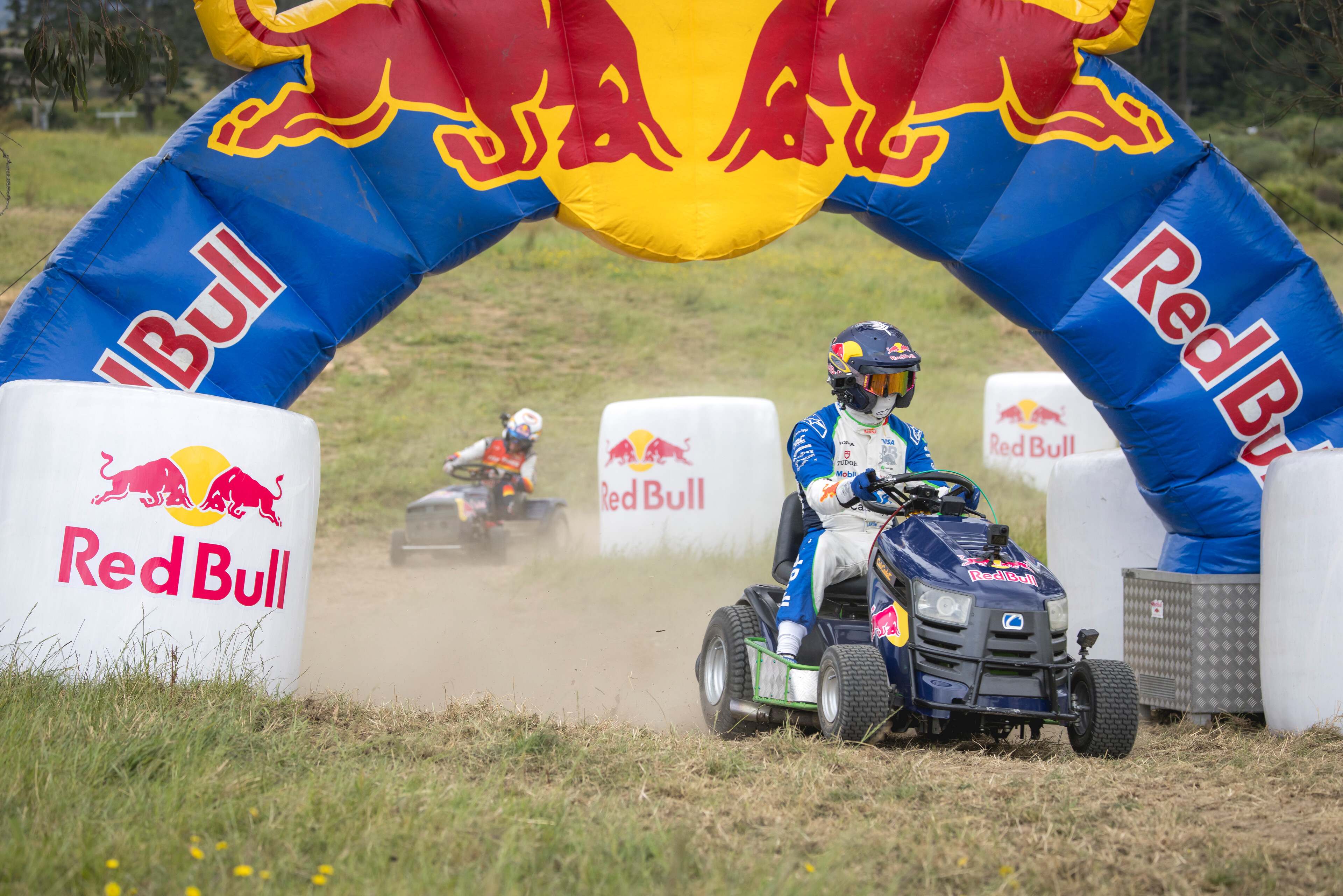Posljednji test je oslikao pravu novozelandsku domišljatost, a to je brza utrka kosilica na zemljanom terenu, ali s "joker" krugom. To je transformisalo inovaciju u dvorištu u spektakl punog gasa, bez aerodinamike ili podataka na koje bi se moglo osloniti.