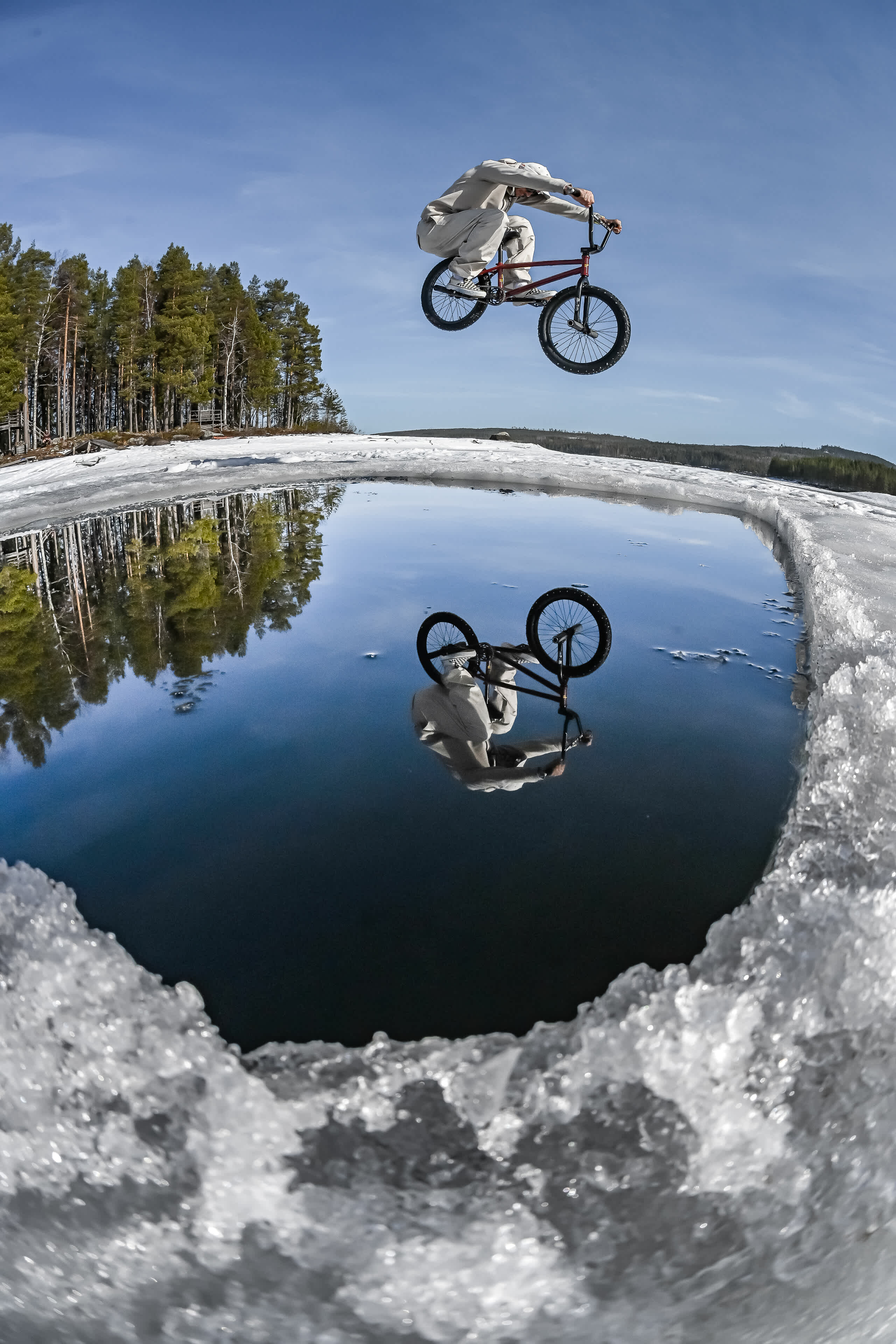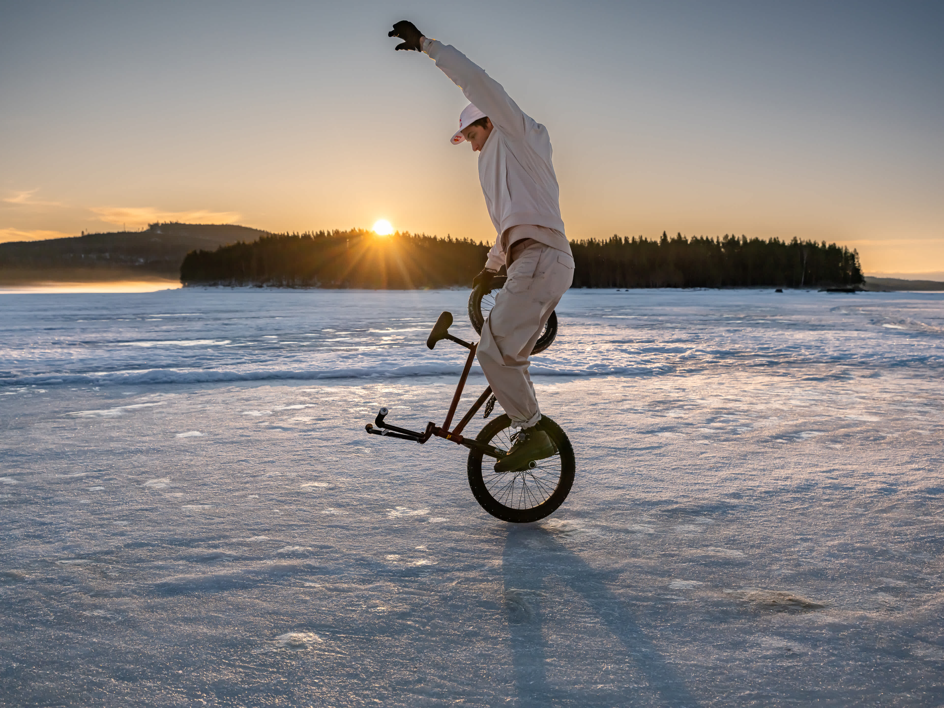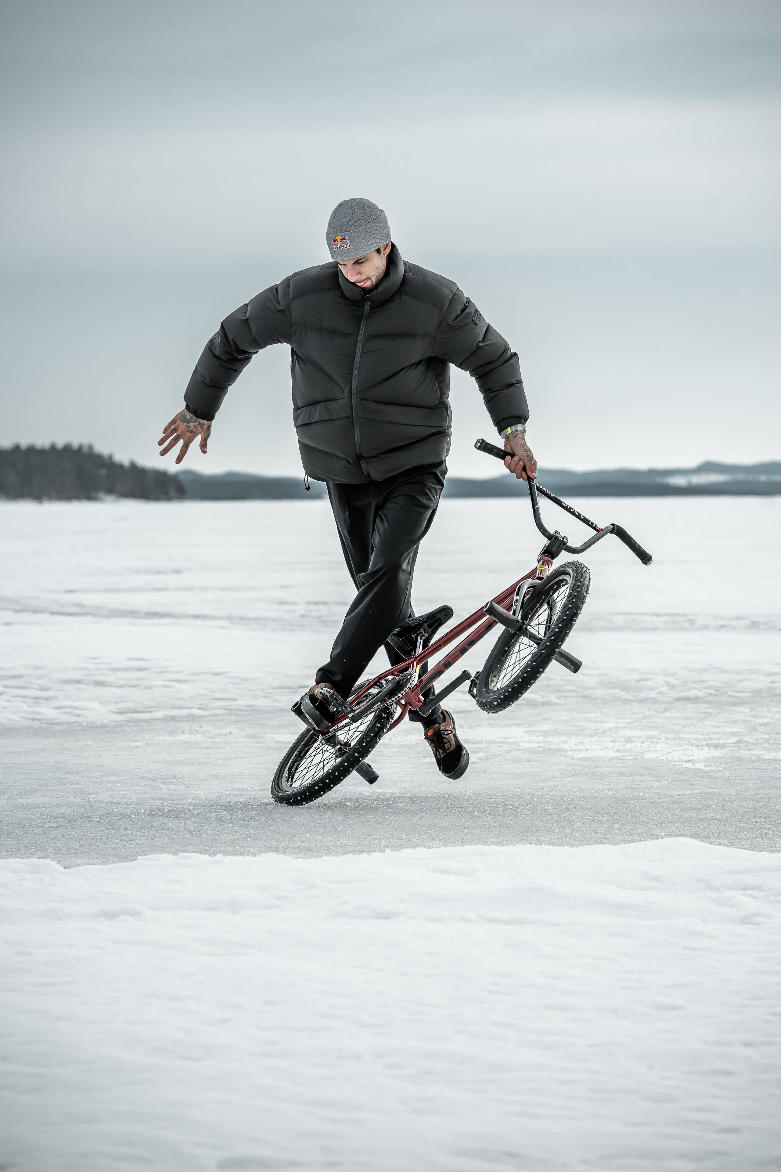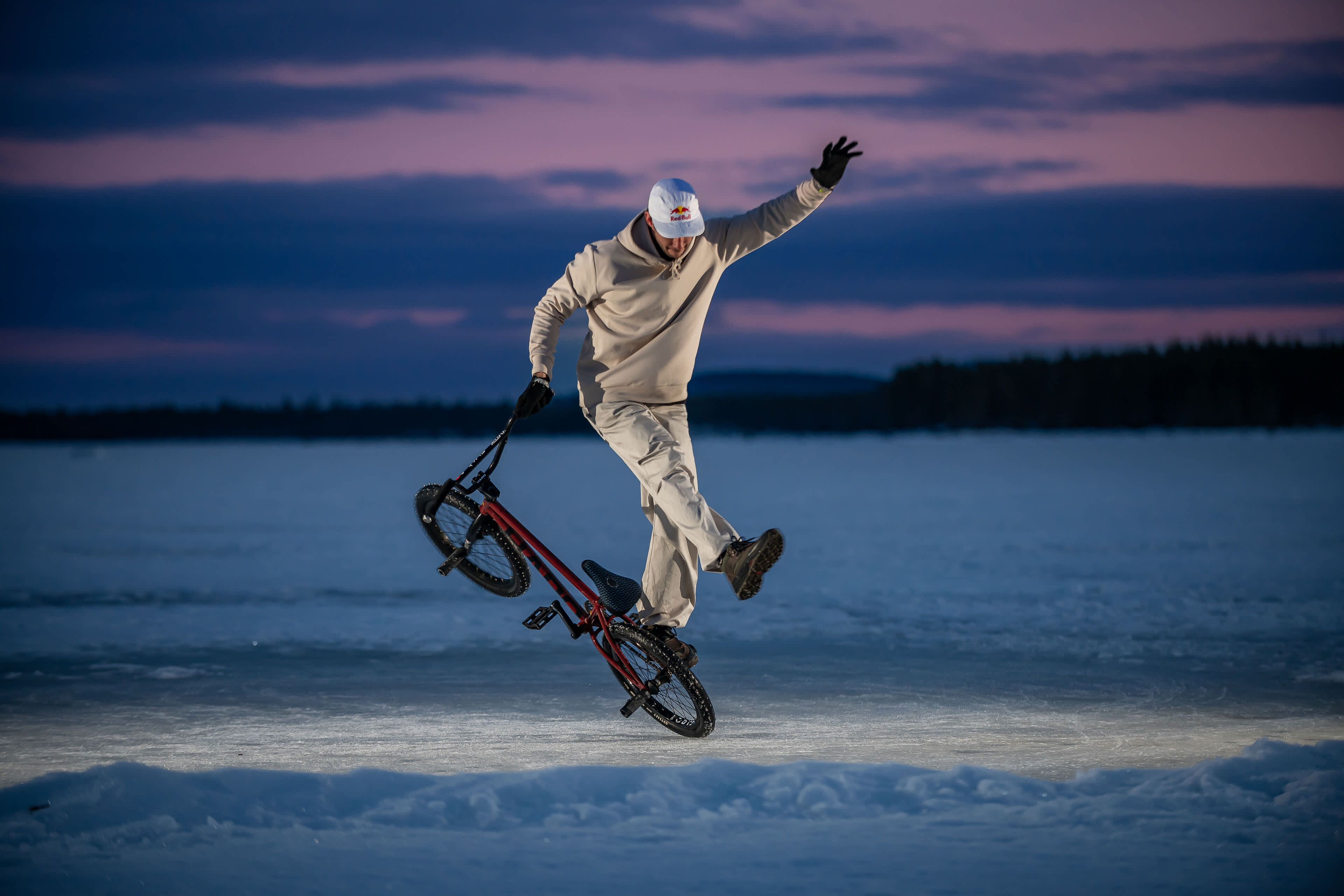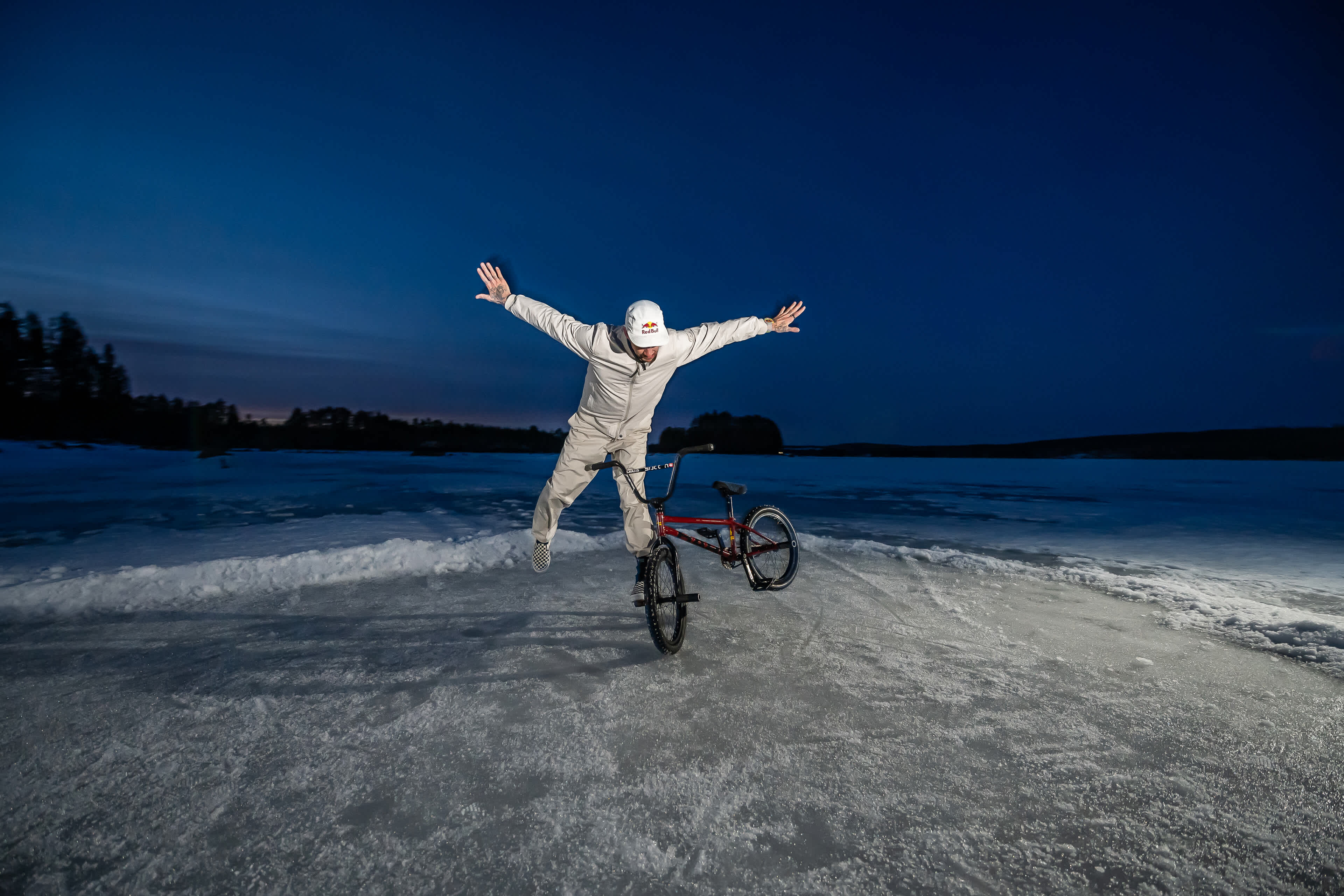 U ovom zimskom okruženju, Dandois se odlučio na neobičan izazov, a to je vožnja BMX-a na potpuno zaleđenom jezeru.