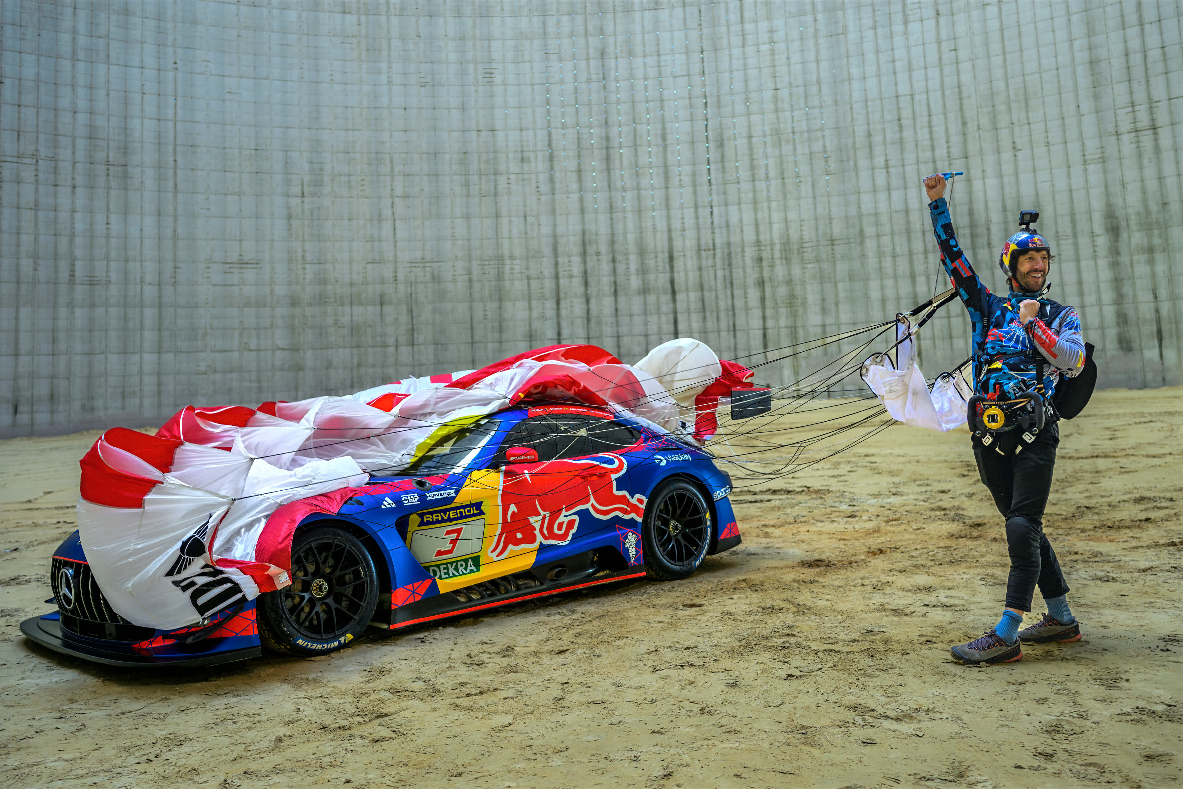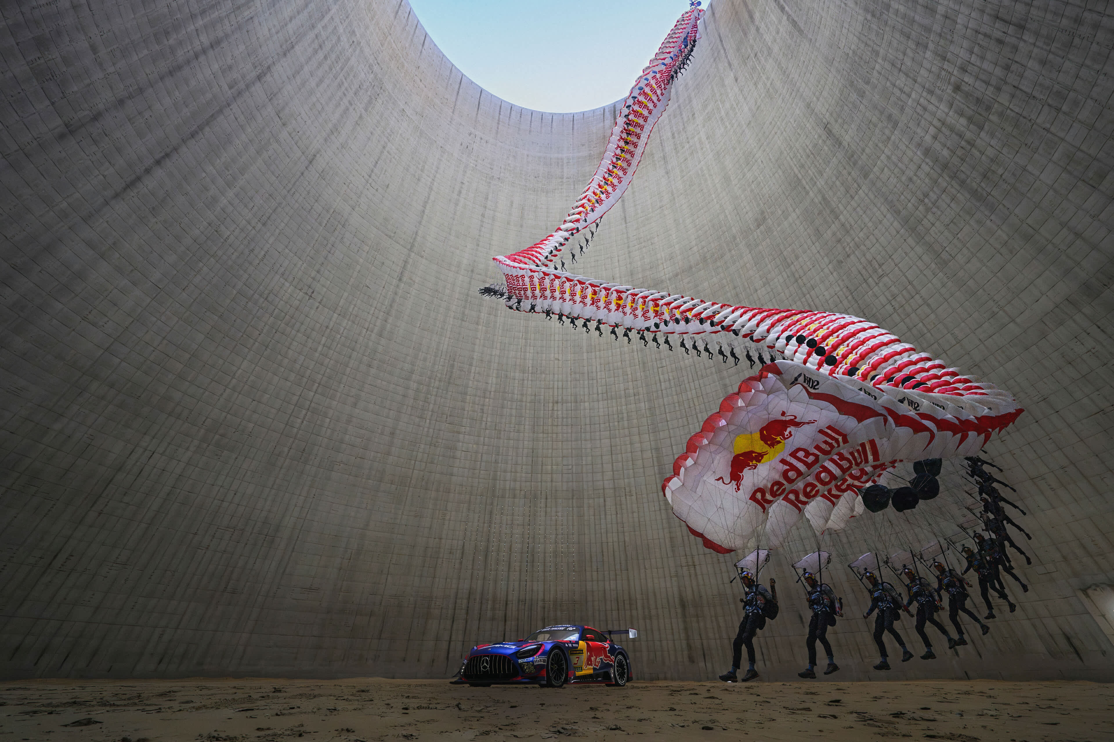 Livreja je otkrivena na spektakularan način, a to je B.A.S.E. skok. Njemački sportista Max Manow izveo je B.A.S.E. skok s visine od 131 metra u rashladni toranj u Meppenu, kako bi otkrio upečatljivu novu Red Bull livreju tima Mercedes-AMG Team Verstappen Racing.