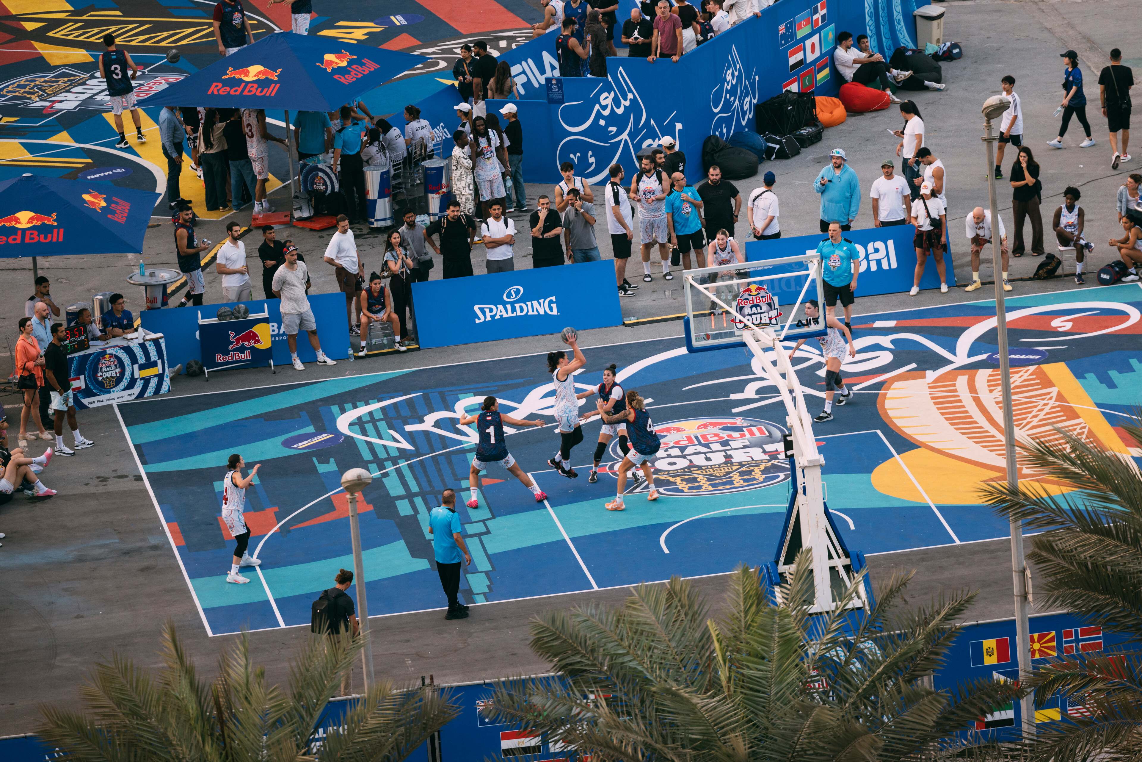 Od debija 2021. godine, Red Bull Half Court je redefinisao globalni ulični košarkaški turnir, a svoja svjetska finala je održavao na kultnim lokacijama, uključujući Rim, Kairo u ambijentu piramida, Beograd, koji se široko smatra domom '3 na 3' košarke, New York City u Brooklyn Bridge Parku i Dubai, gdje se utakmica igrala na prilagođenom LED terenu ispred Muzeja budućnosti.