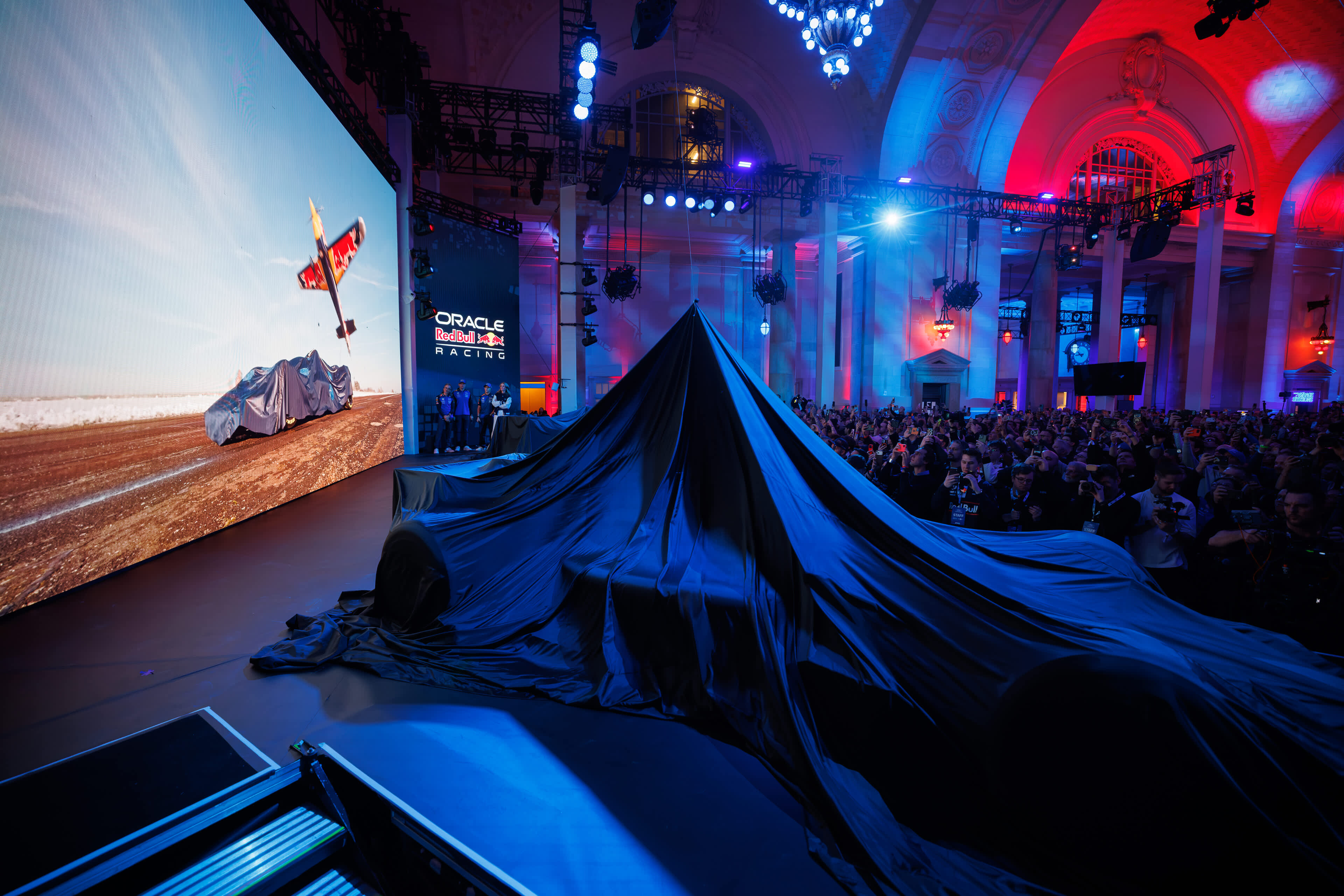 Sam događaj predstavljanja novih livreja održan je u Detroitu na lokaciji historijske željezničke stanice Michigan Central Station, dok je Šonkin podvig snimljen ranije. Svjetski prvak Red Bull Air Racea iz 2018. godine dao je svoj doprinos tako što je izveo spektakularan niski prelet i Cobra manevar te je koristeći rep svog aviona skinuo pokrivač s F1 bolida Oracle Red Bull Racinga. Njegov novi spektakularni podvig snimljen je na aerodromu Jindřichův Hradec još u novembru 2025. godine.