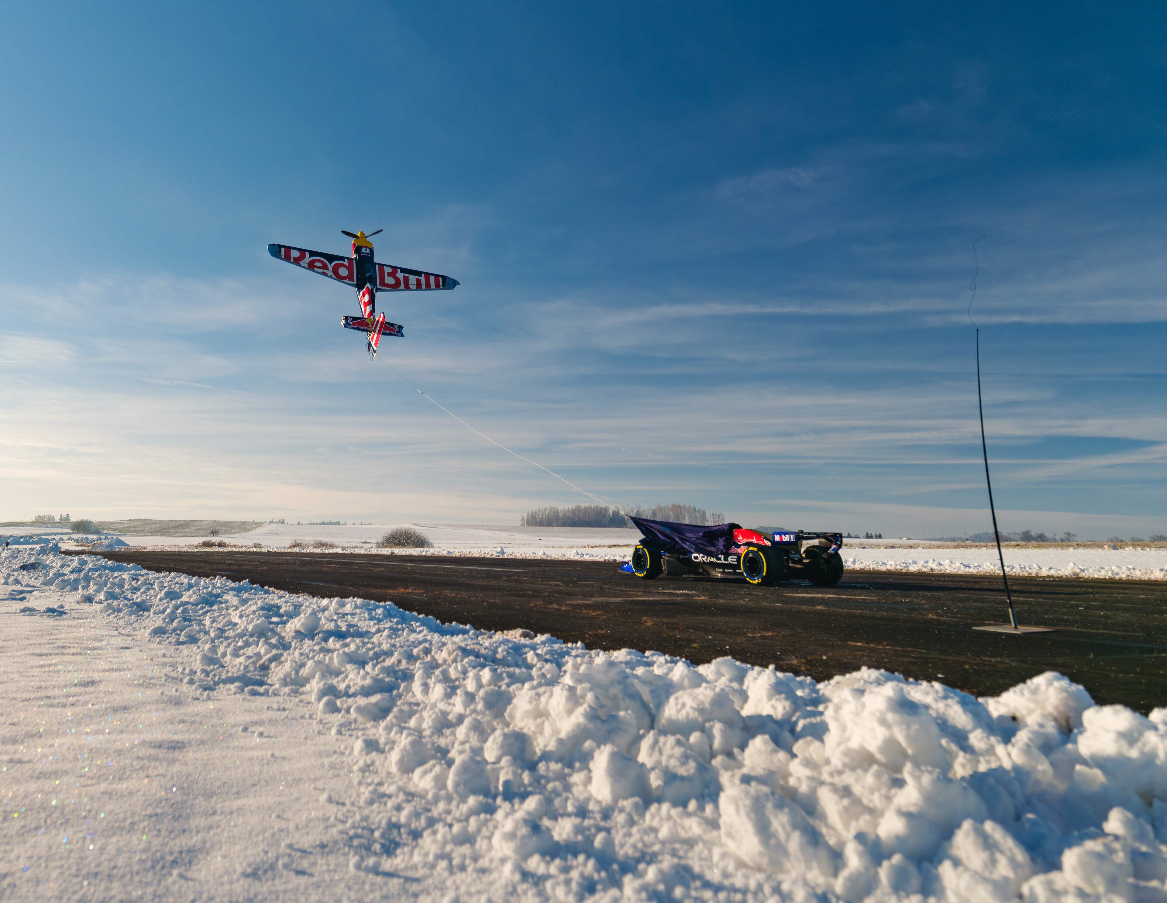 Ovog puta, iskusni 47-godišnji pilot dobio je zadatak da spektakularno predstavi novu livreju Oracle Red Bull Racinga, a projekt je zahtijevao mjesece pažljive pripreme, posebno jer se dan snimanja poklopio s ledenim uvjetima u Češkoj Republici.