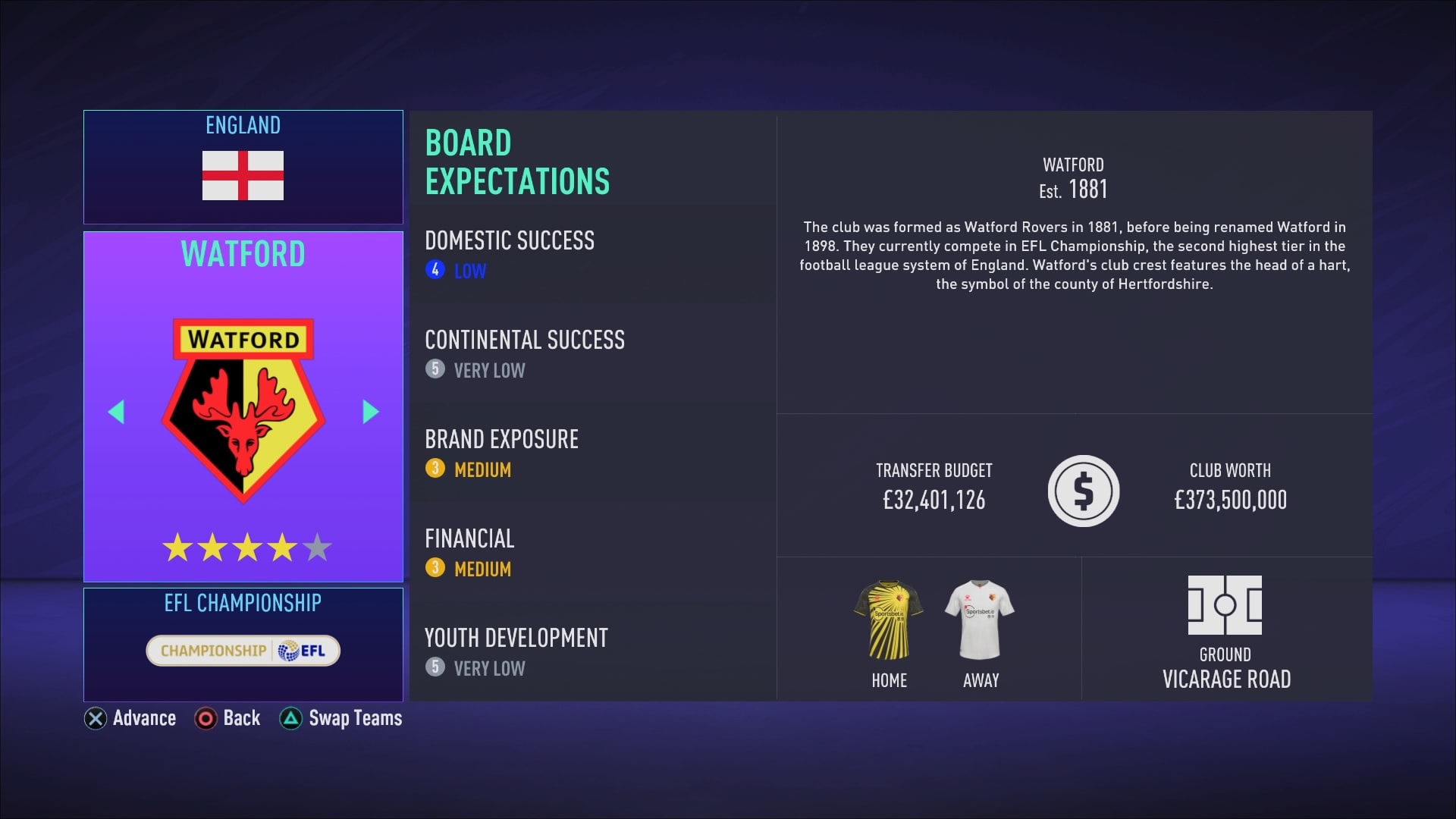 Vous n'aimez ni le champagne, ni les rencontres au sommet, ni les titres achetés à grands coups de pétrodollars ? Alors Watford est fait pour vous. Il s'agit de la meilleure équipe de Championship (la D2 anglaise) sur le papier, elle a un peu plus de 30 millions à dépenser pour se payer quelques joueurs solides et vous pourriez donc en profiter pour devenir celui qui l'emmènera vers le toit de l'Europe. Puis, vous changerez de club pour fuir une gloire factice, en sifflotant du Ennio Morricone vers le soleil couchant, tandis que vos joueurs, une coupe à la main, écraseront une larme devant le vestiaire. Prends ça, Hollywood.