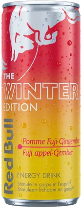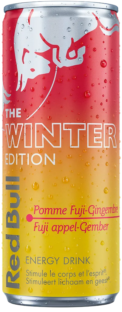 The Red Bull Winter Edition met de smaak van Fuji appel en een warme toets van gember.