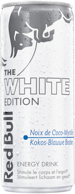 De Red Bull White Edition bevat dezelfde kwalitatief hoogstaande ingrediënten als Red Bull Energy Drink en heeft een smaak van kokos-blauwe bosbes.