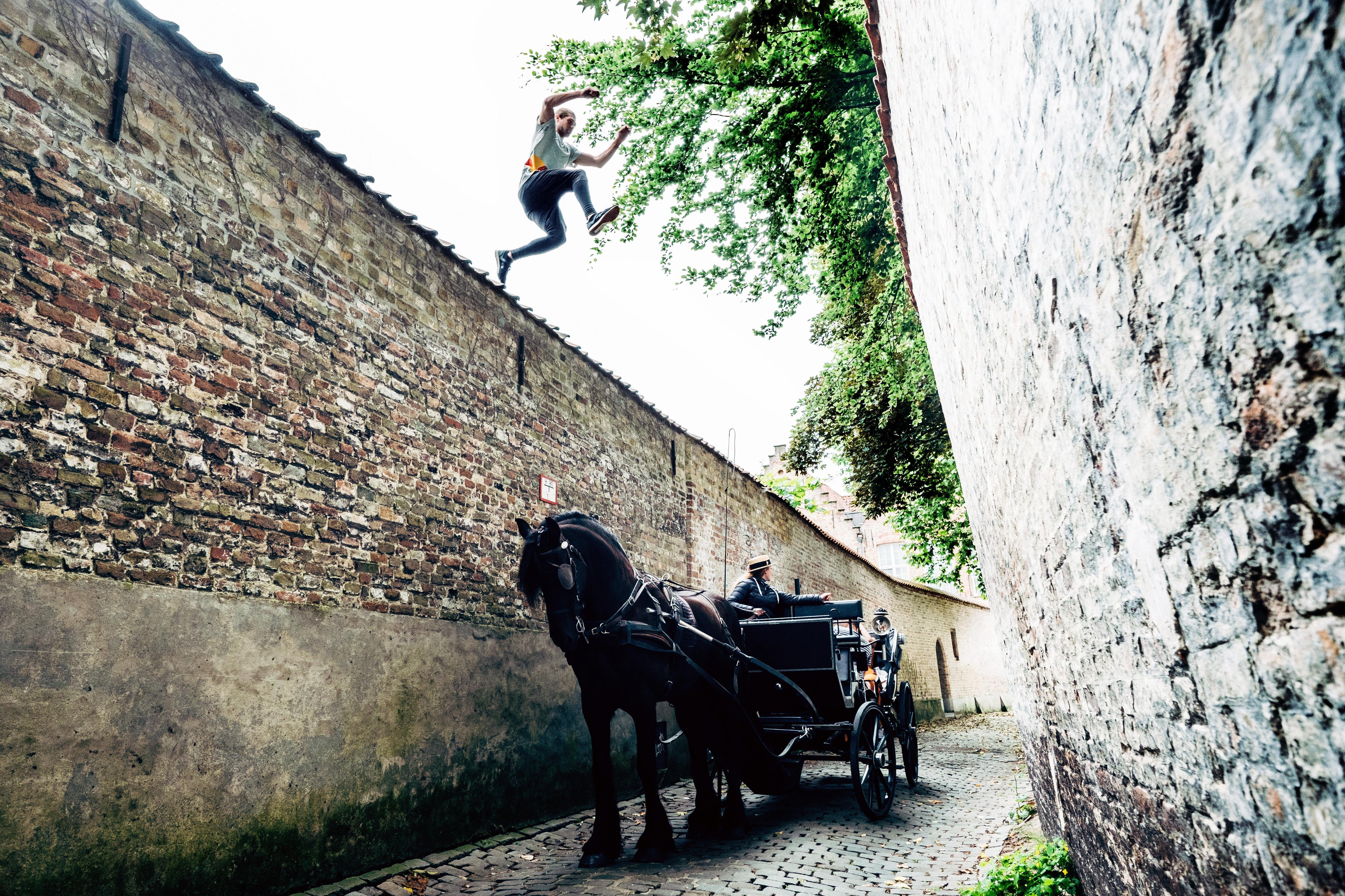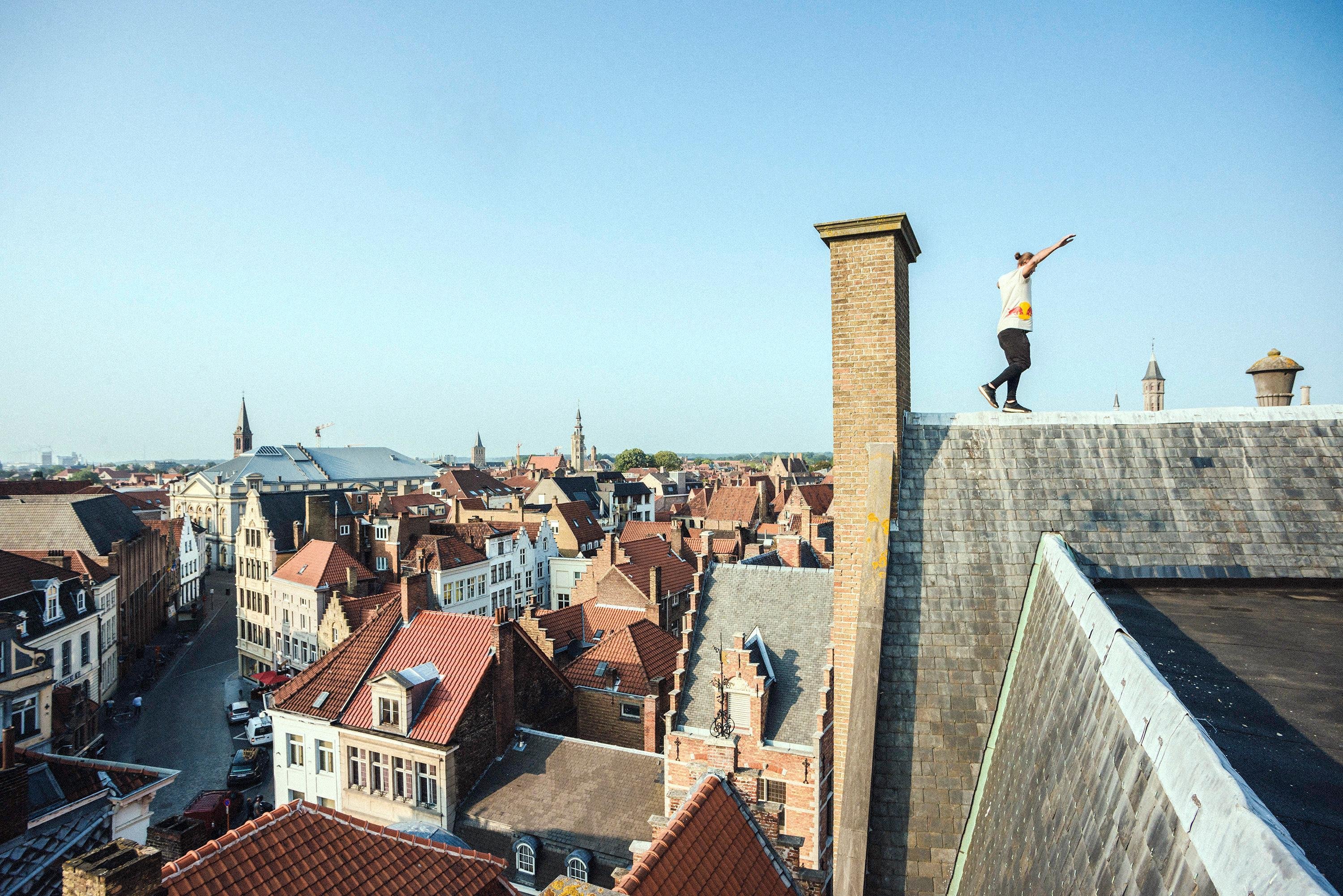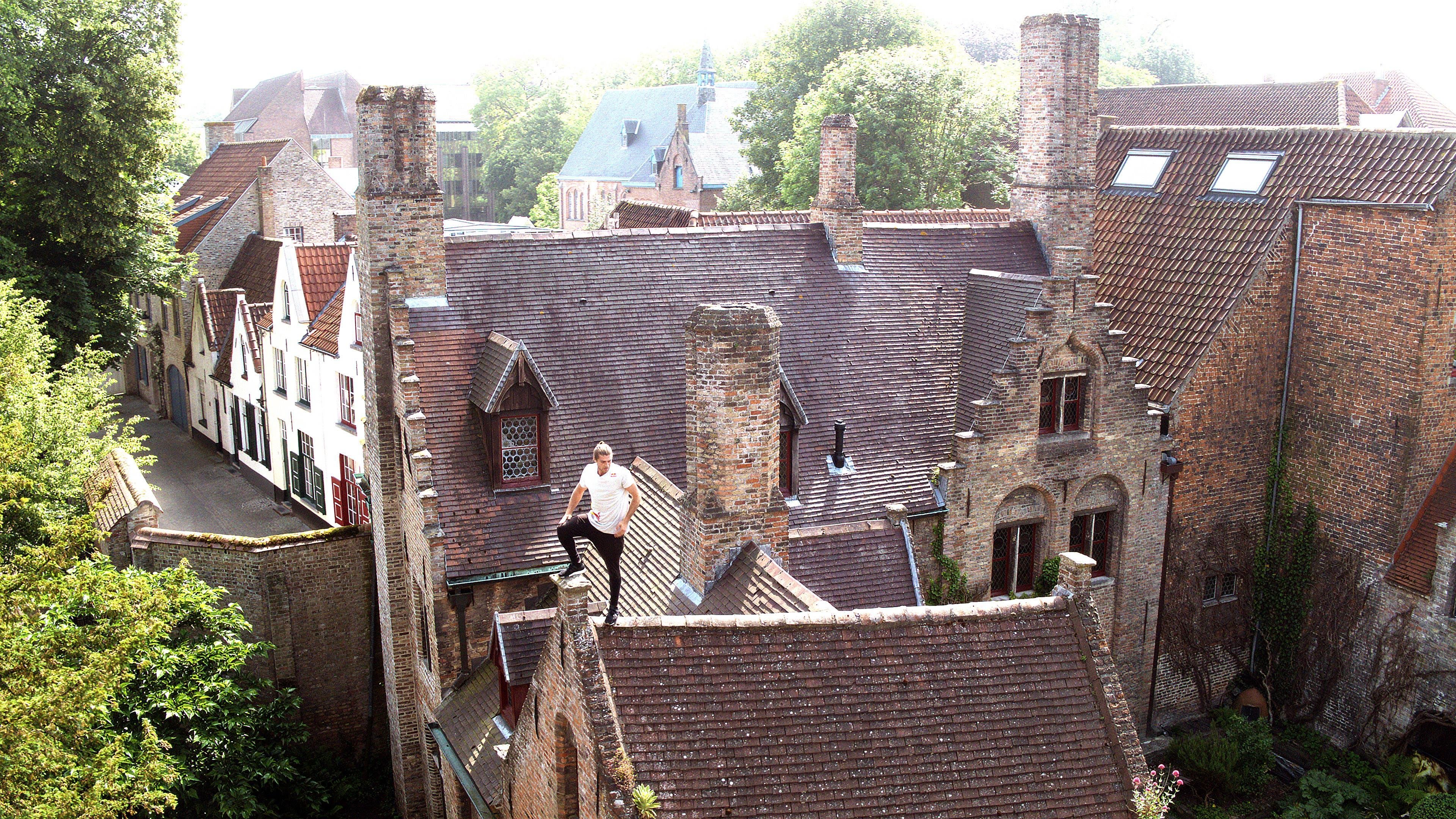 Vliegend op en over Brugse daken, torens, trapgevels en zelf het Belfort neemt Dominic ons mee op een atletische reis vol sprongen en flips langs de mooiste plaatsen van de Brugse binnenstad. Altijd in beweging, de essentie van freerunning. Want dat is zijn sport. Al bestaan daar nog wat misvattingen over.