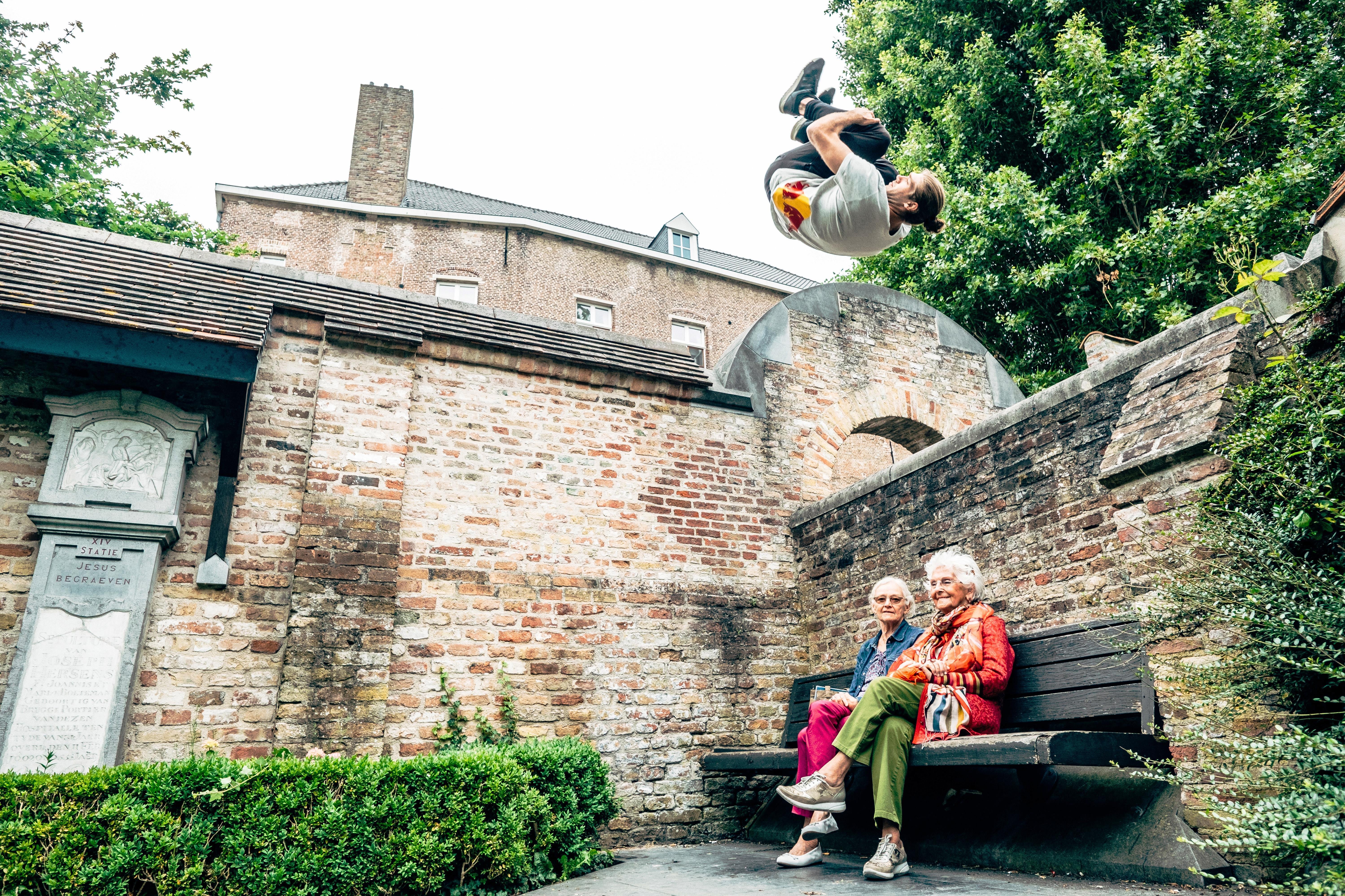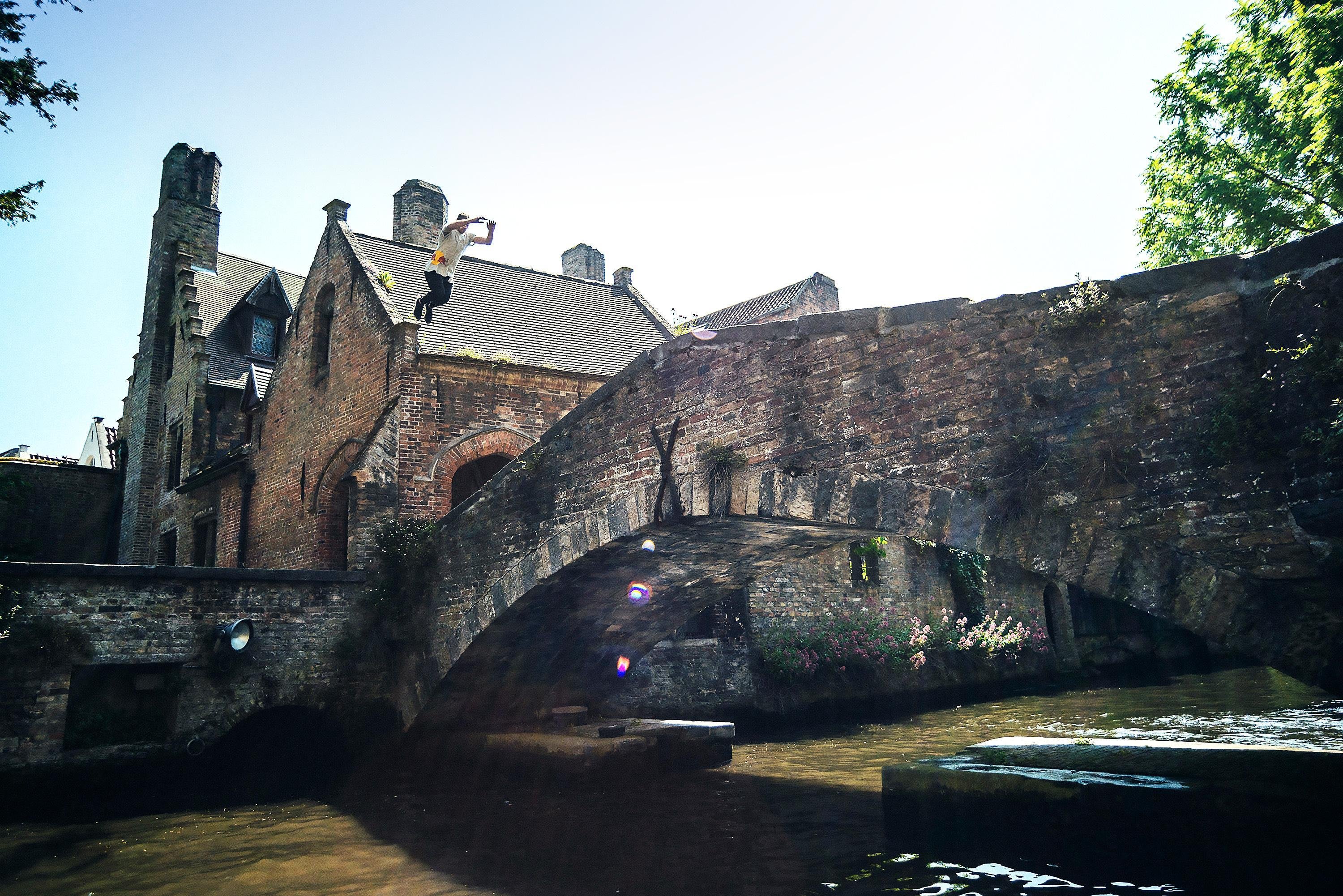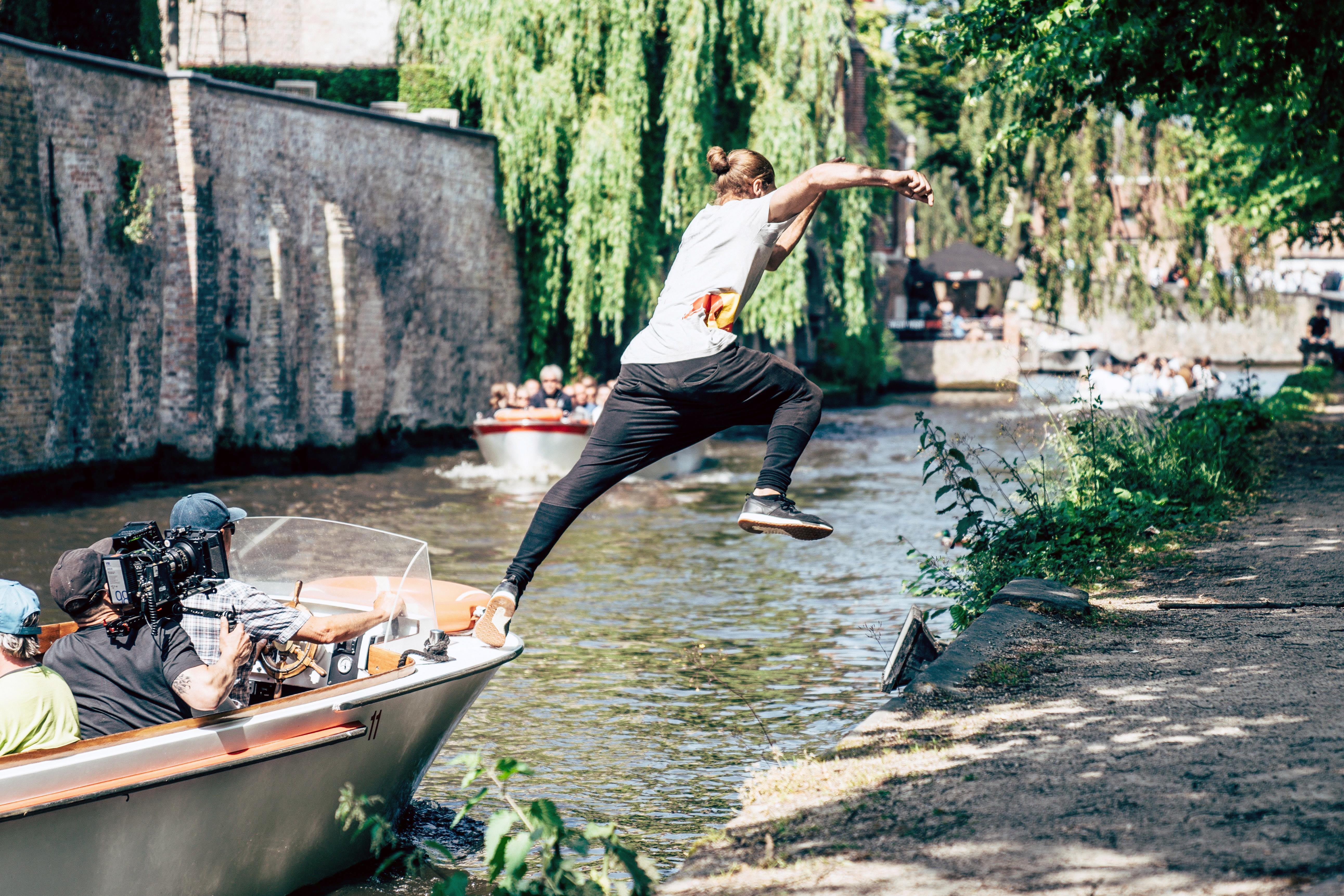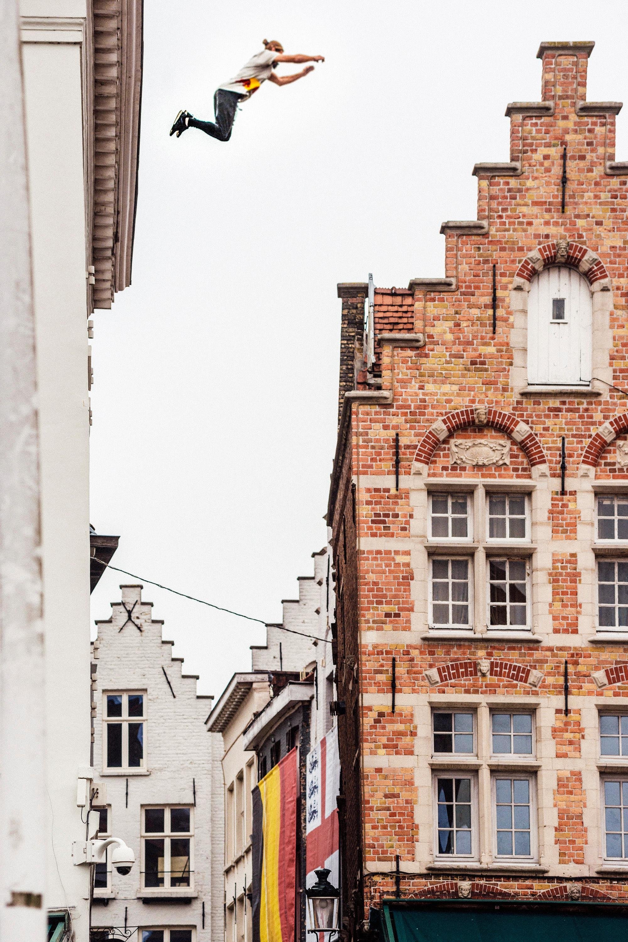 Vliegend op en over Brugse daken, torens, trapgevels en zelf het Belfort neemt Dominic ons mee op een atletische reis vol sprongen en flips langs de mooiste plaatsen van de Brugse binnenstad. Altijd in beweging, de essentie van freerunning. Want dat is zijn sport. Al bestaan daar nog wat misvattingen over.