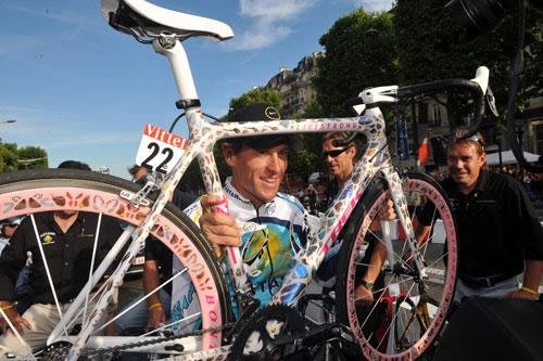 Designer renomado, Damien Hirst usou asas de borboletas reais para customizar o quadro e as rodas da bike usada por Lance Armstrong no Tour de France em 2009. A bike foi leiloada no ano passado em beneficio a Fundação Livestrong pela bagatela de meio milhão de dólares.