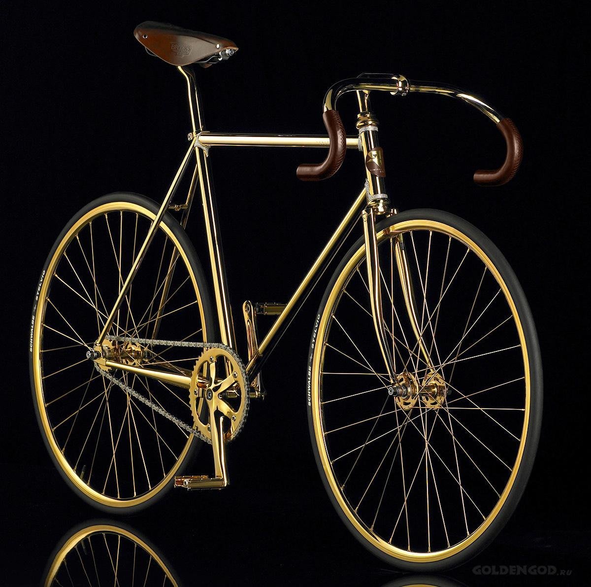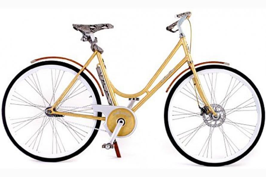 Esta estradeira banhada de ouro 24 quilates e acabamento com 600 cristais Swarovski é uma das bicicletas mais luxuosas já produzida. A marca Aurumania a define como "celebração do sublime", em que esta bike nem precisa ser de ouro maciço, é uma verdadeira obra de arte!