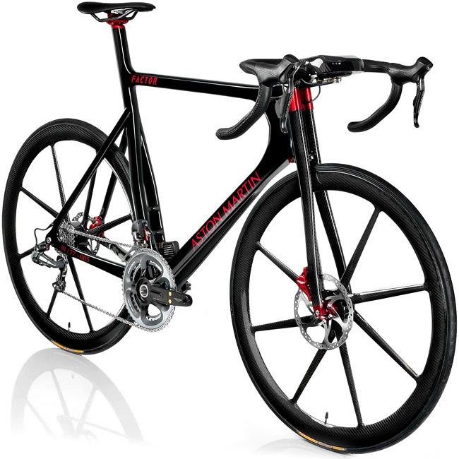 A estradeira Factor desenvolvida em conjunto com a marca inglesa de carros superesportivos Aston Martin é uma das bicicletas mais sofisticadas tecnologicamente da atualidade. Graças ao desenvolvimento em parceria com a Beru F-1 System, que apresentou uma solução diferenciada para o tubo da caixa de direção e garfo, assim como um mecanismo de comando eletrônico com sensores distrubuídos pelo chassi, integrando luzes em LED. Uma verdadeira supermáquina!