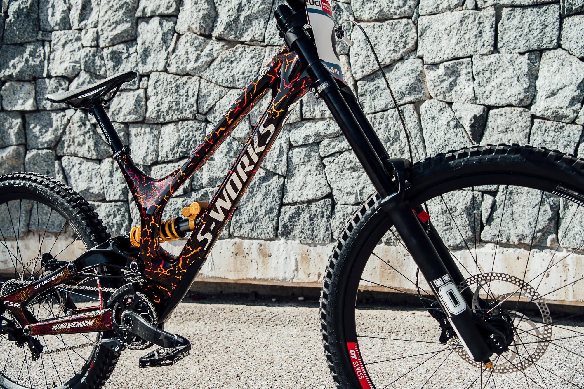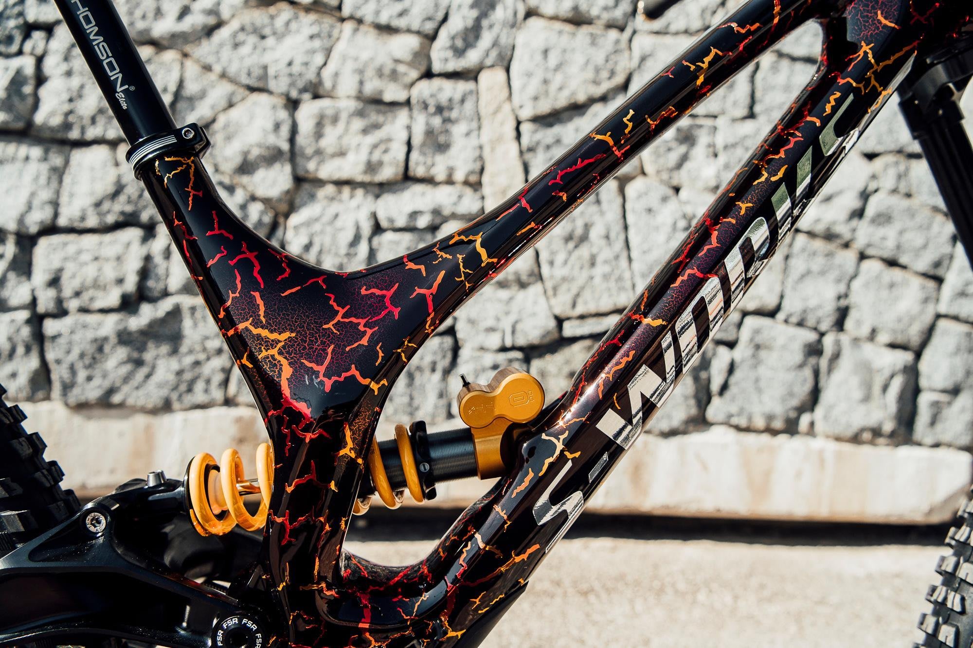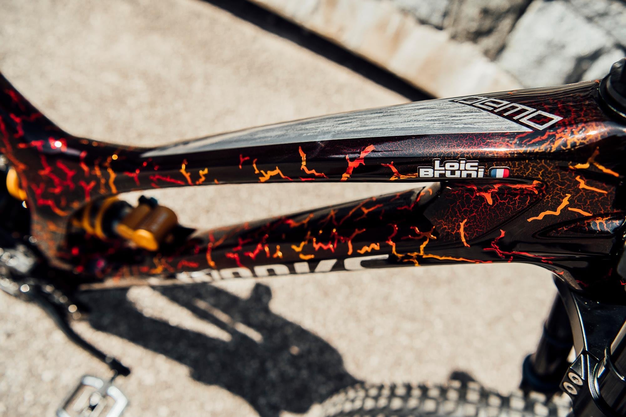 - Pintura: gráfico "Lava de vulcão" customizado pela Specialized na ideia de Bruni