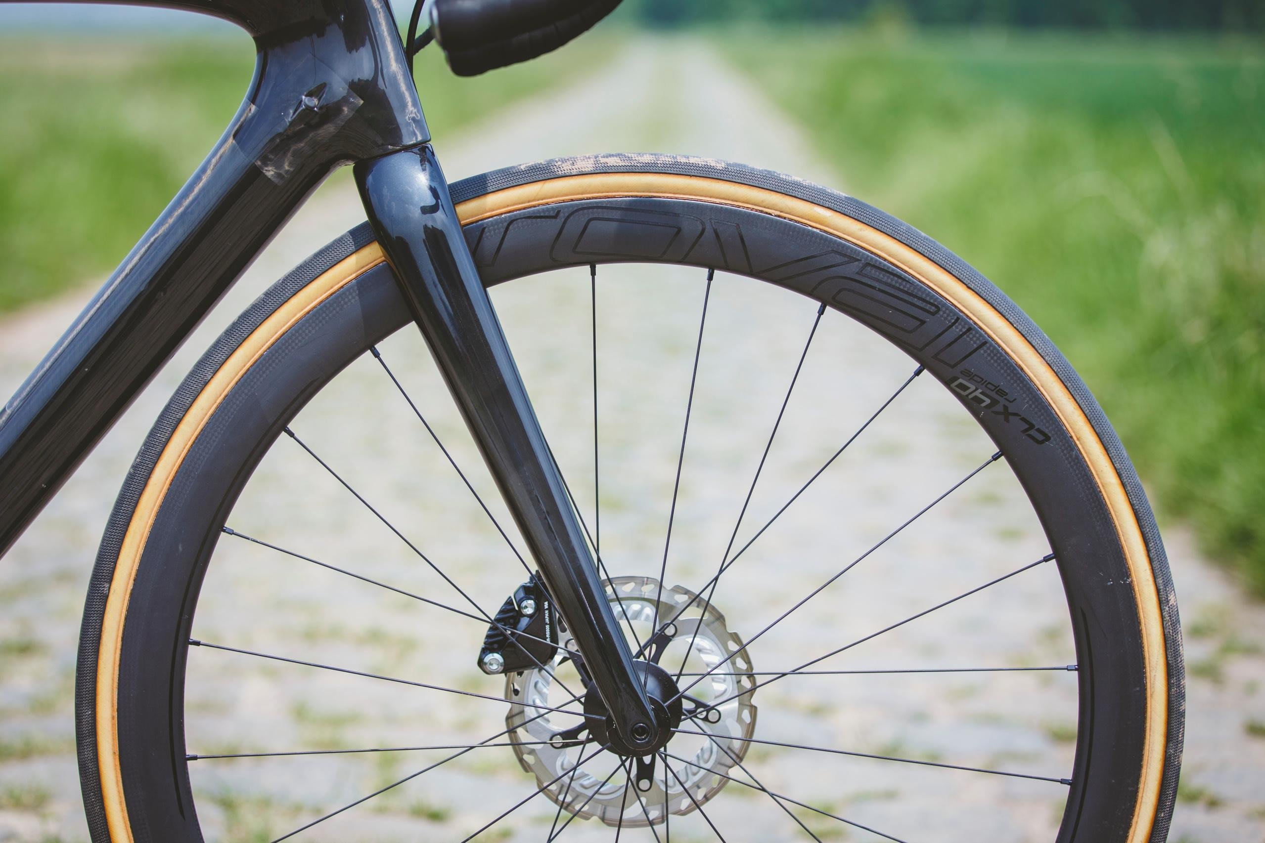Outro detalhe diferenciado da bike é o uso de pneus mais largos - medida 700X35, ao invês de 700X25 comum em outras estradeiras - que oferece maior area de contato com o solo, consequentemente, melhor aderência nas curvas.