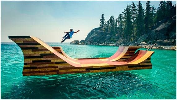 23) Ele também andou em uma minirrampa flutuante no meio do lago Tahoe.