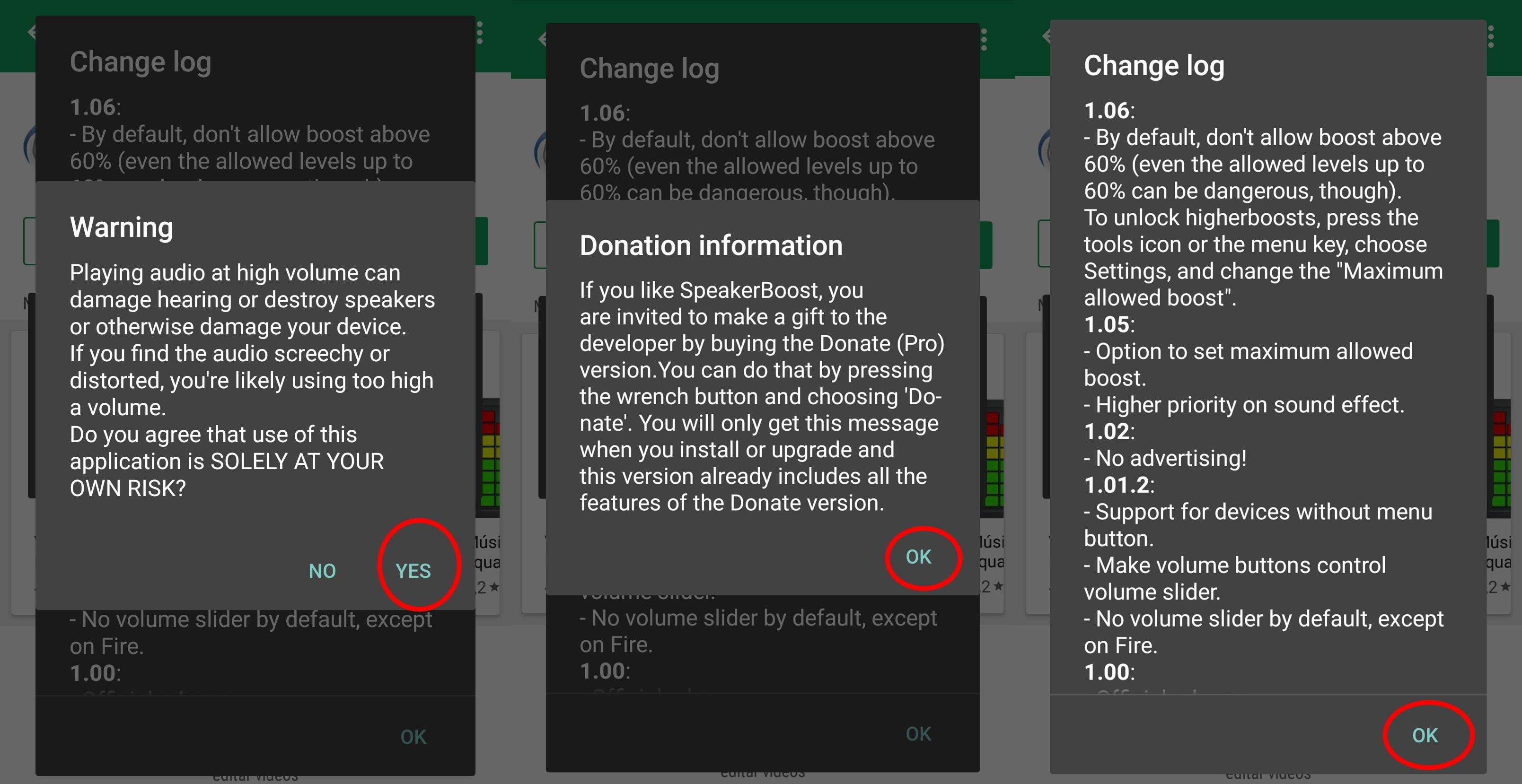 Após baixar e instalar o aplicativo, execute e aceite as informações que surgirem na tela clicando em "YES", depois "OK" e "OK" de novo. Estas informações nada mais são do que avisos para você tomar cuidado com o uso da aplicação, pois aumentar o limite do volume pode danificar a sua audição e também as melhorias que foram realizar nesta nova versão. Após ter feito isso, vai aparecer uma janela com uma barra de porcentagem de "Boost".