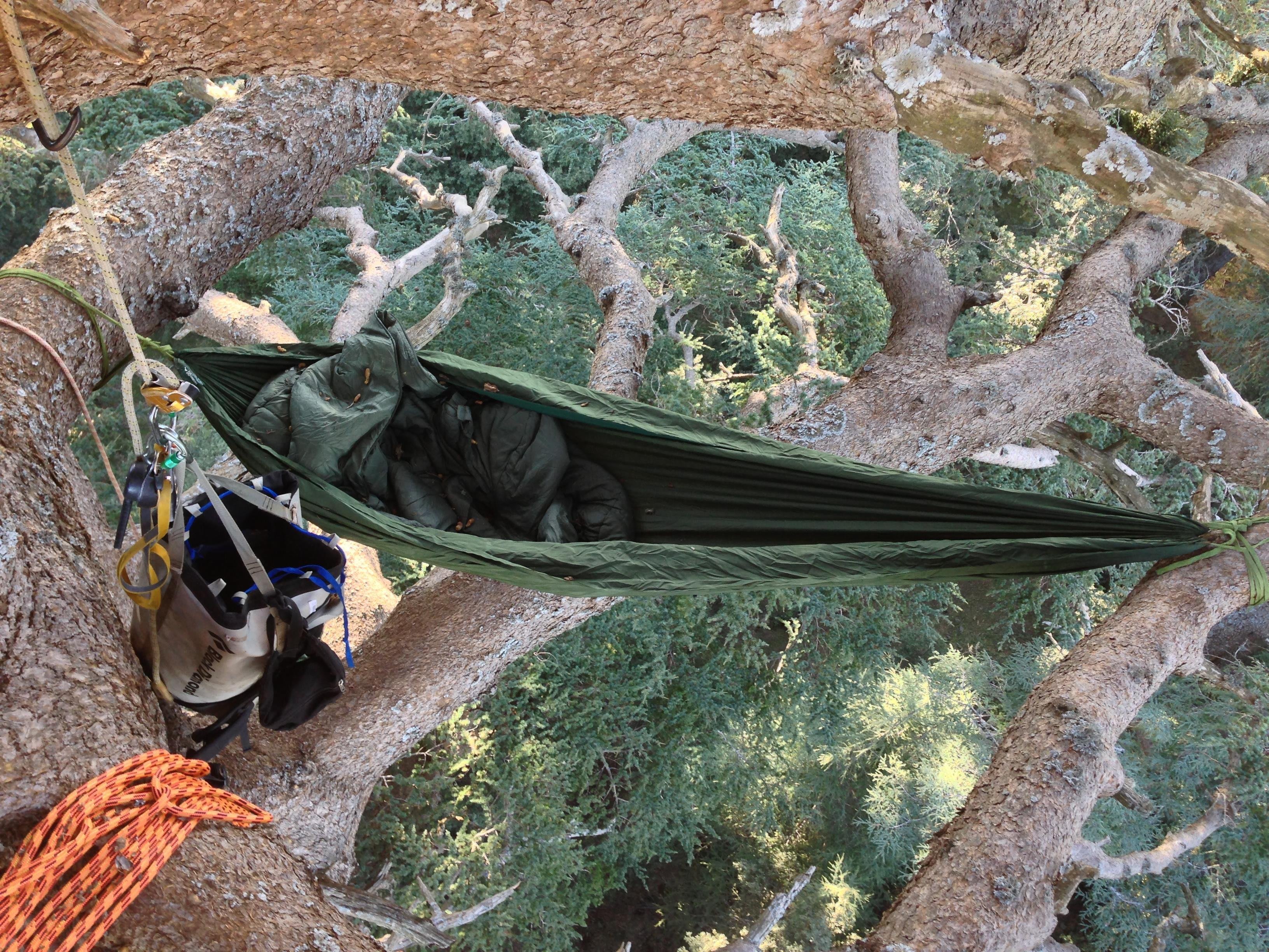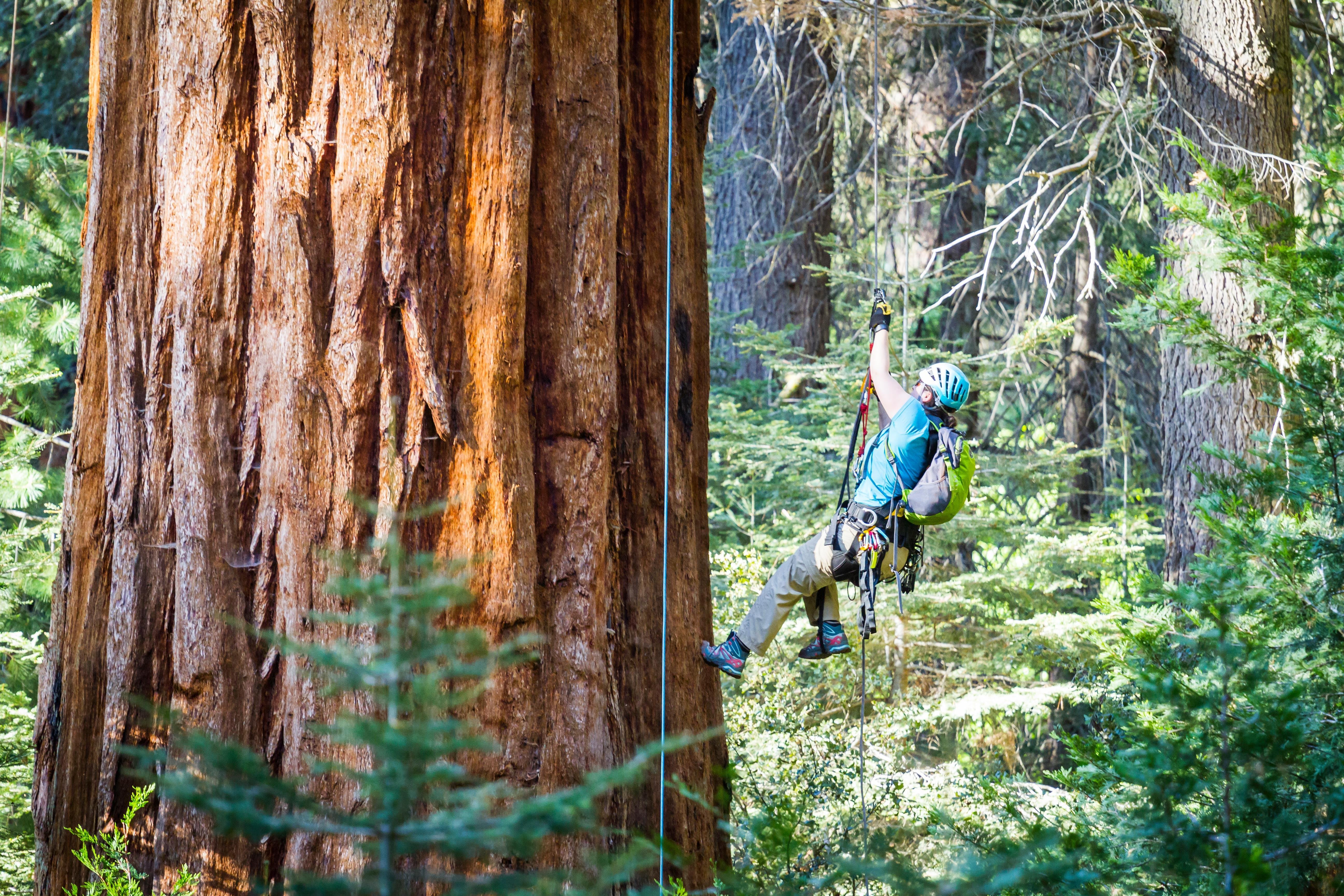 As técnicas de ascensão e cordadas são similares àquelas que utilizamos para um big wall ou uma parede de gelo. Você liga os mosquetões e freios à corda, utilizando a técnica Texas Kick para subir. Na realidade não há outra maneira de subir essas árvores gigantes porque elas são muito grossas.
