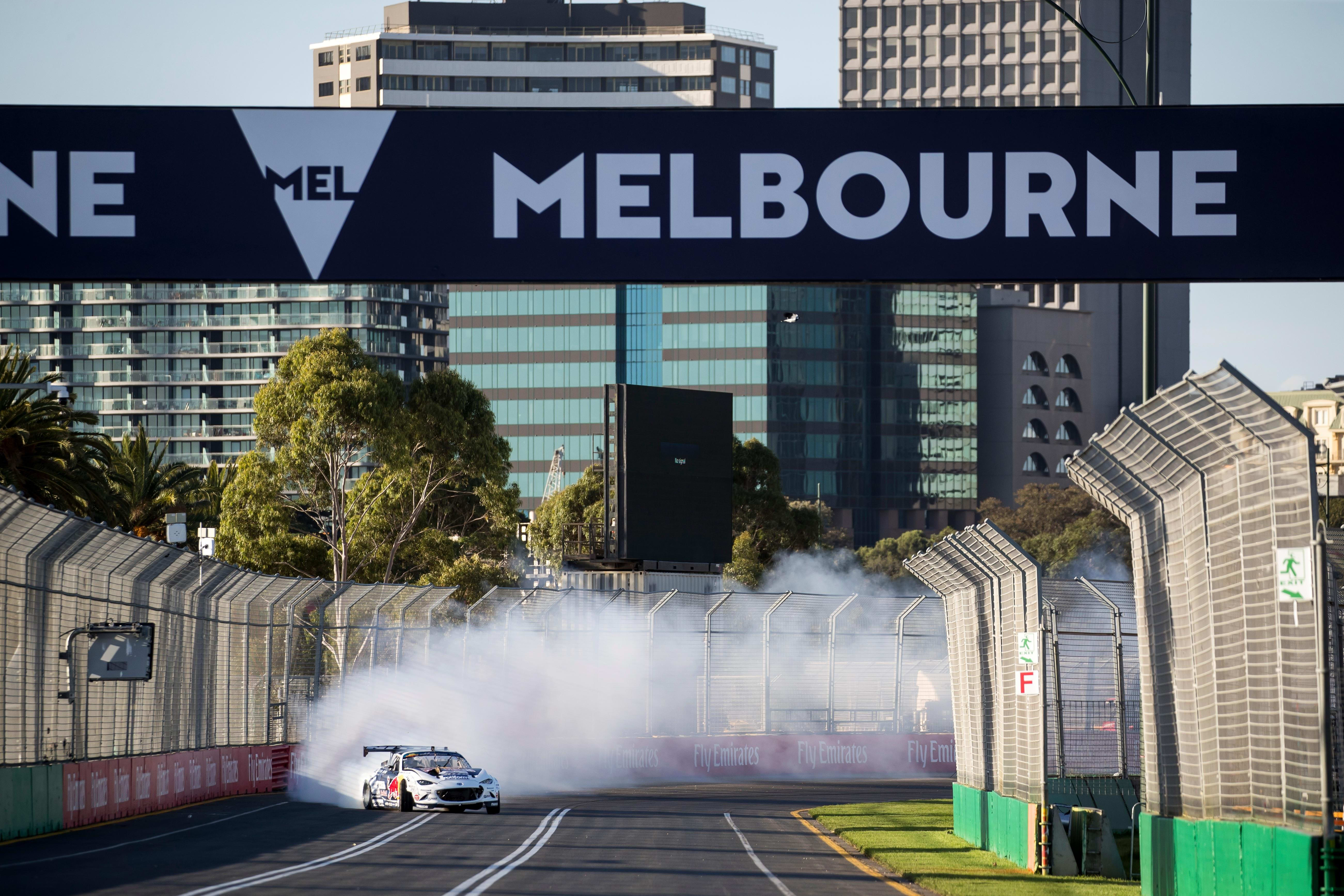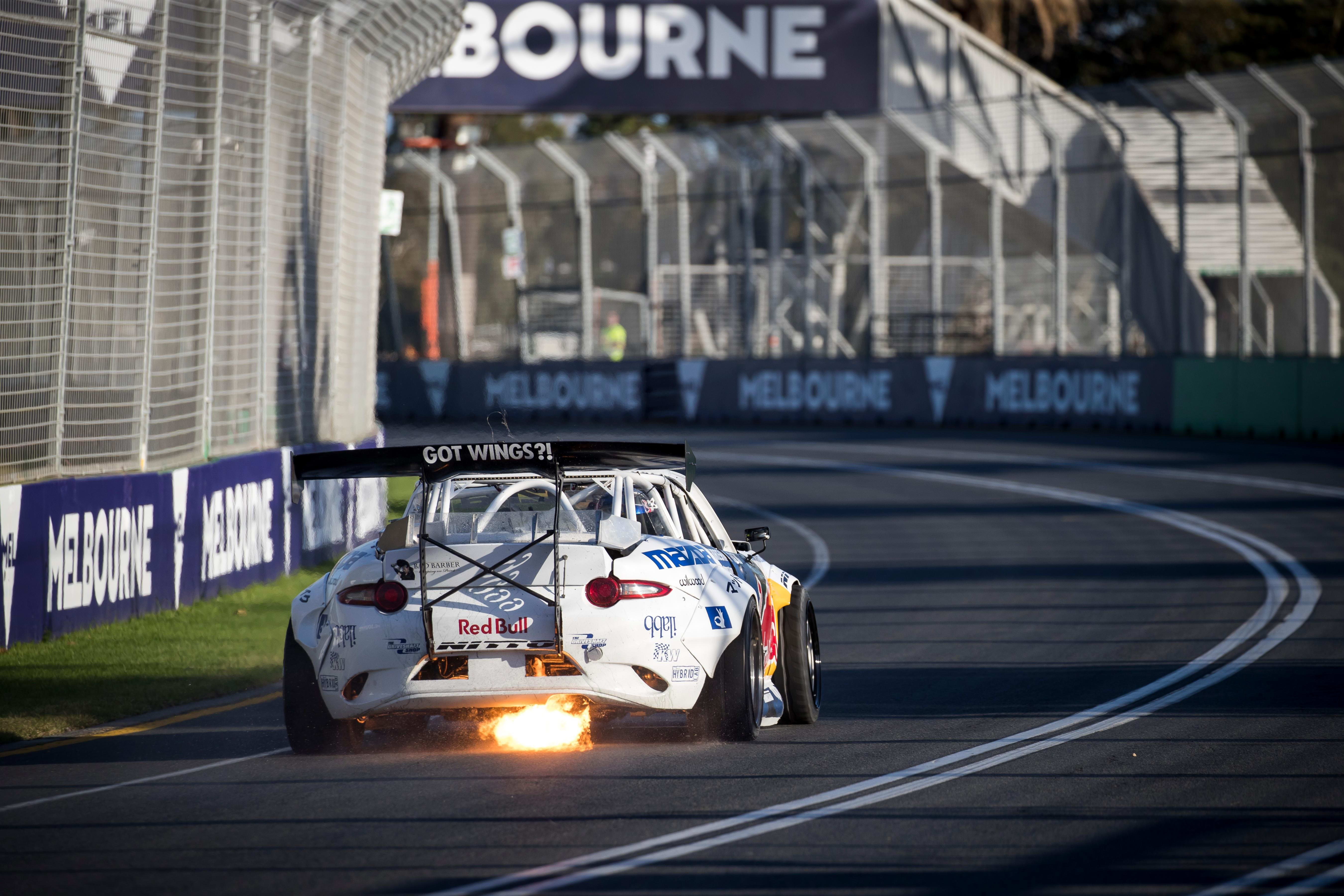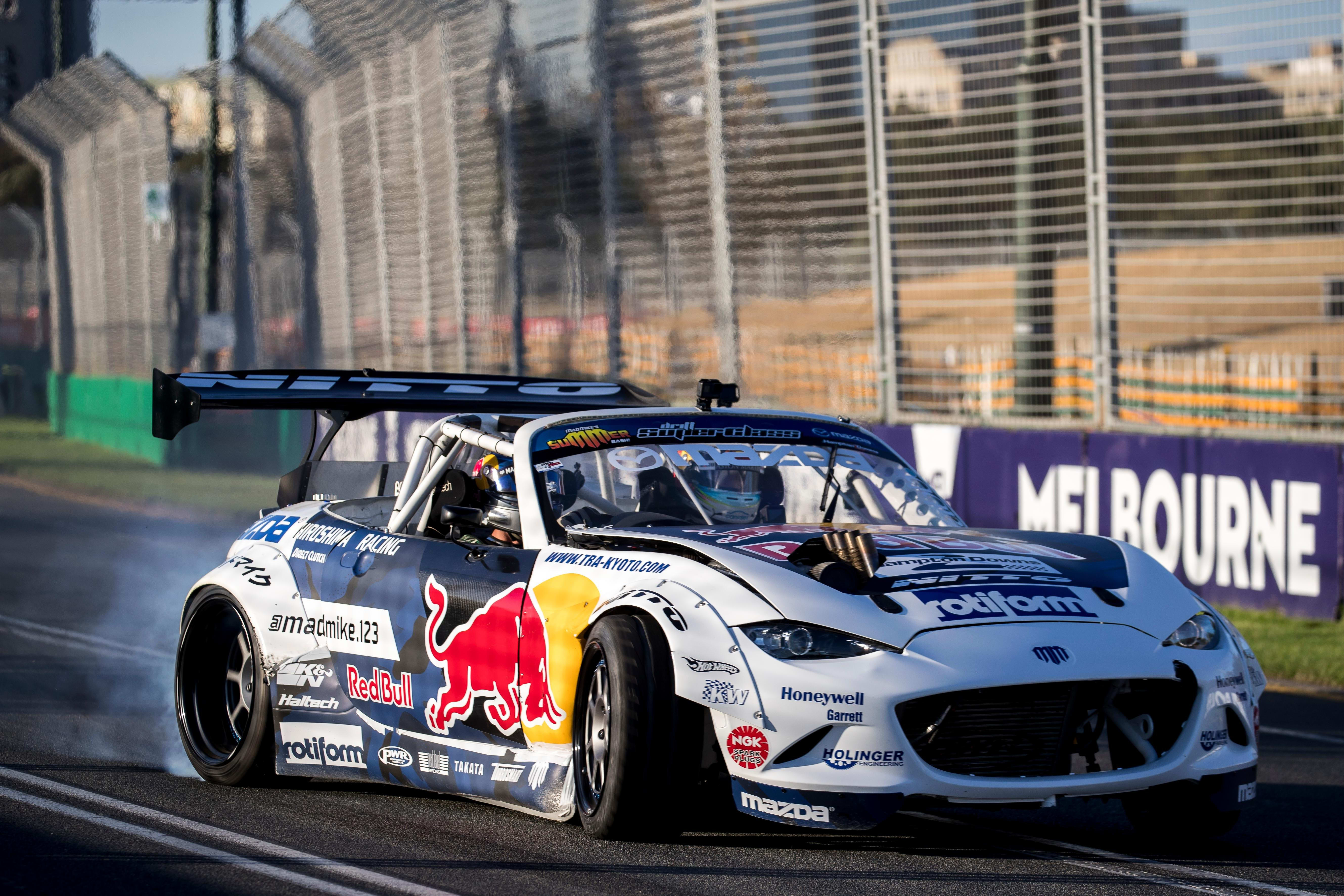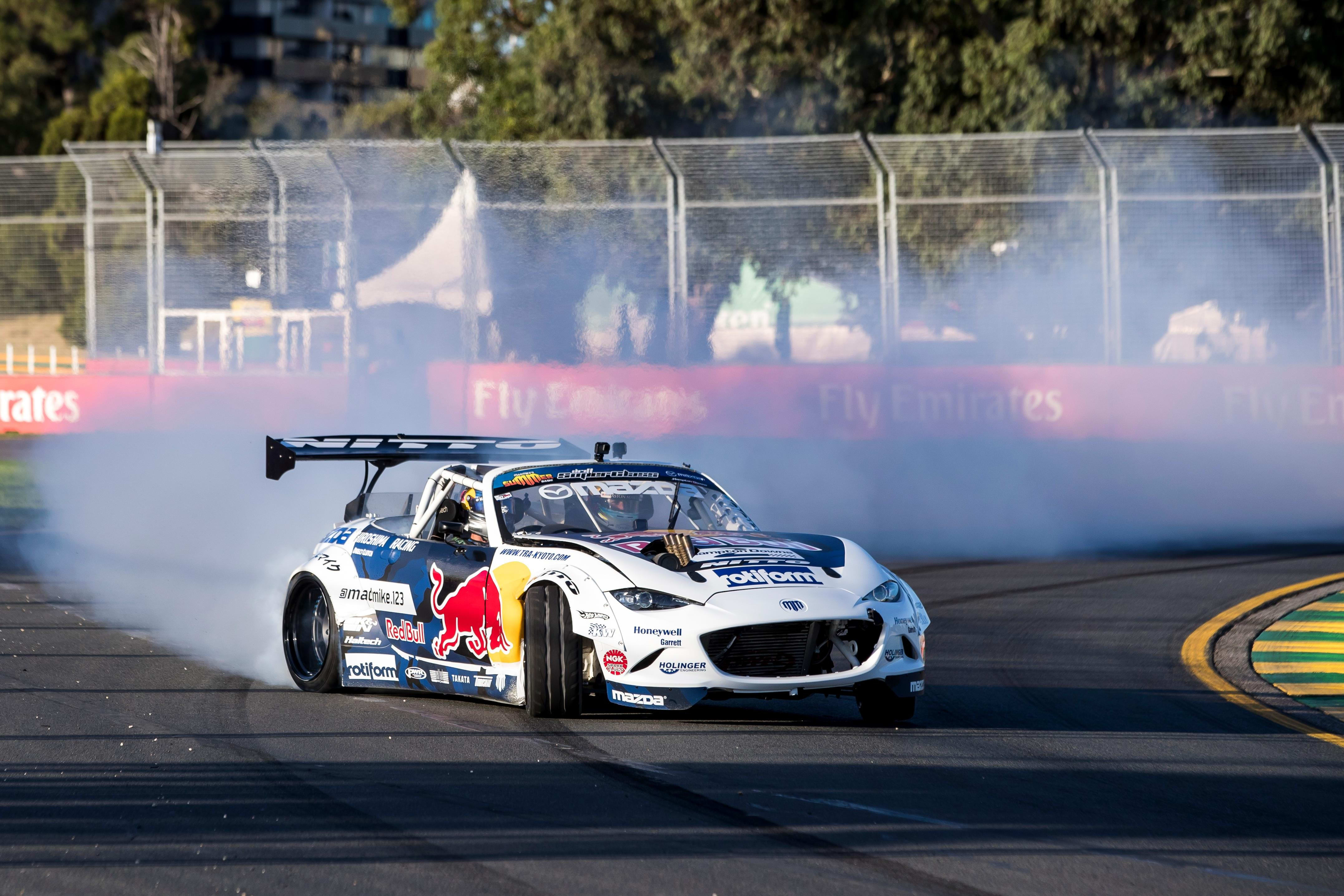 Mad Mike Whiddett leva Daniel Ricciardo para um drift pela Albert Park