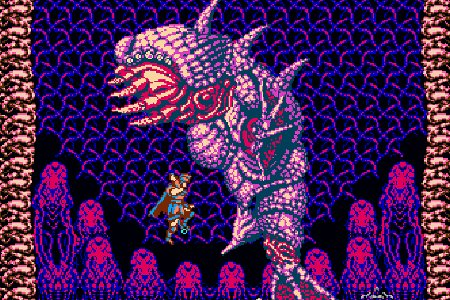 No Oniken eu não cheguei a manter 100% da paleta do NES e acabei roubando bastante, mas eu tentei me fixar nas limitações do hardware. No caso do Odallus, eu queria experimentar usar sprites maiores e com mais quadros de animação, por conta disso eu optei em seguir quase 100% a paleta do NES. Fiz isso porque realmente quiria experimentar como é trabalhar com tão poucas cores. Foi bem difícil mas eu gostei bastante do resultado.